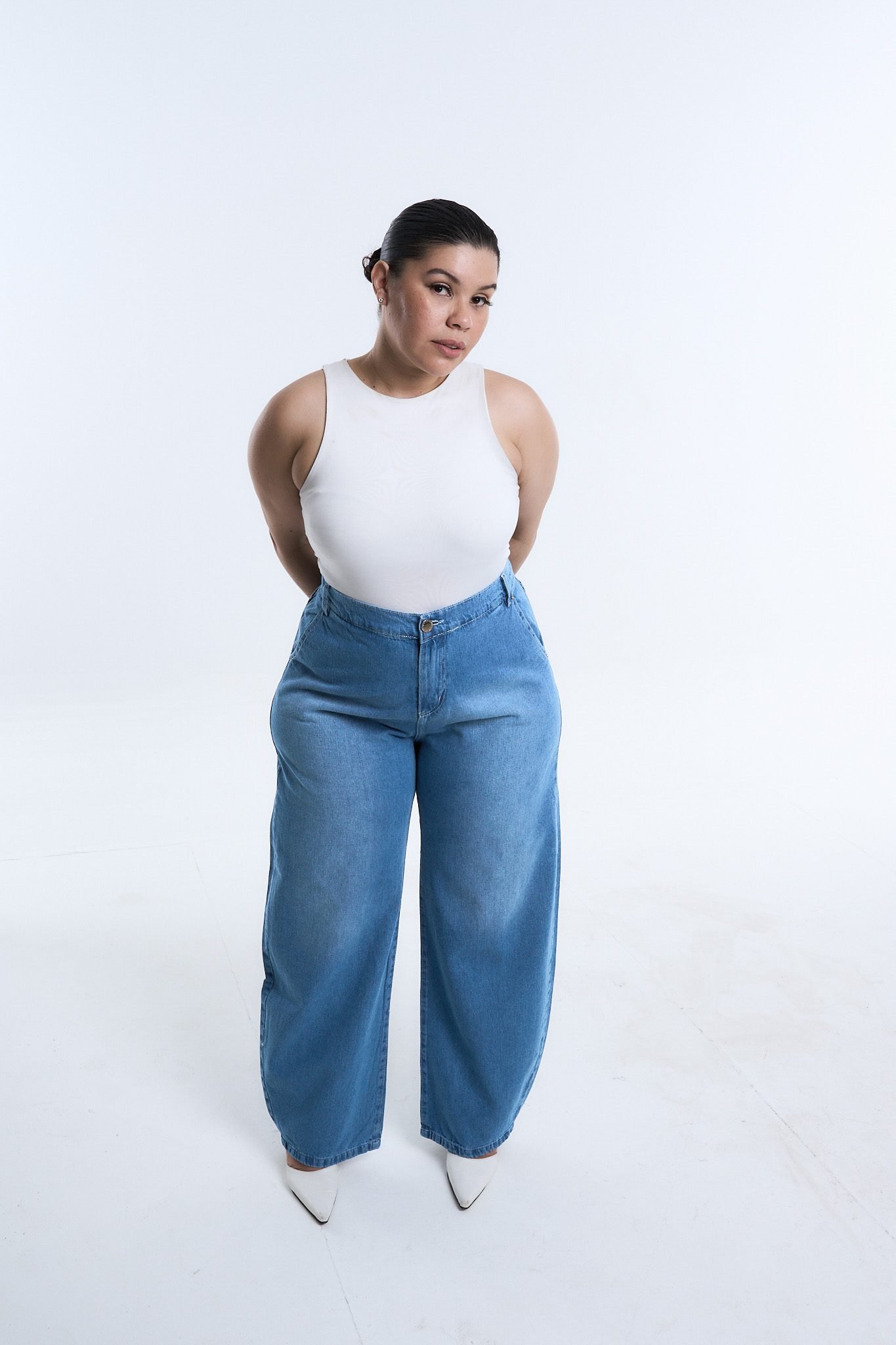 BAGGY ZYA CINTO CON HEBILLA. De tela rígida con ruedo clásico.