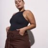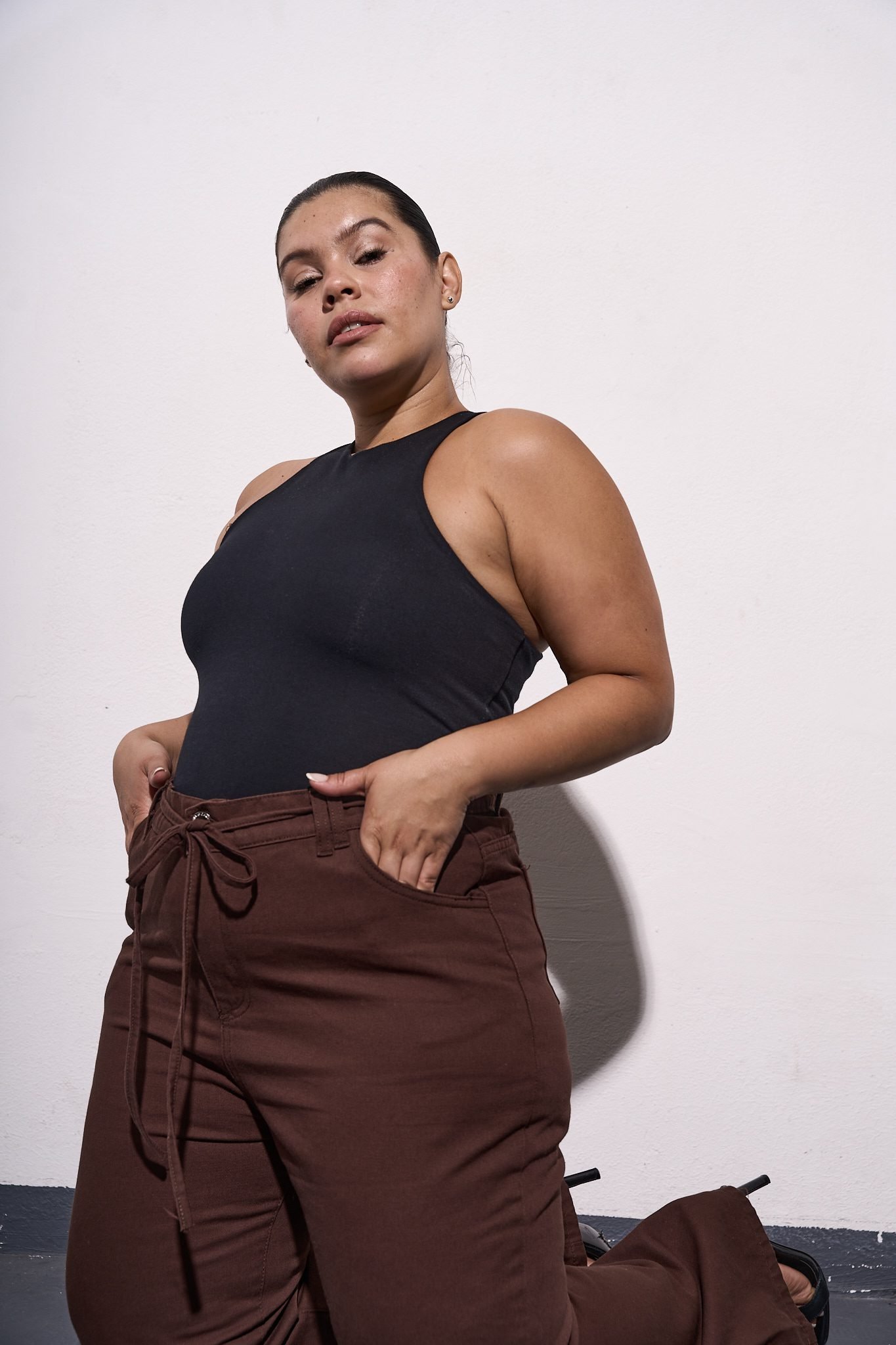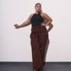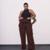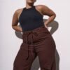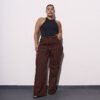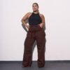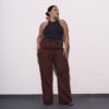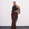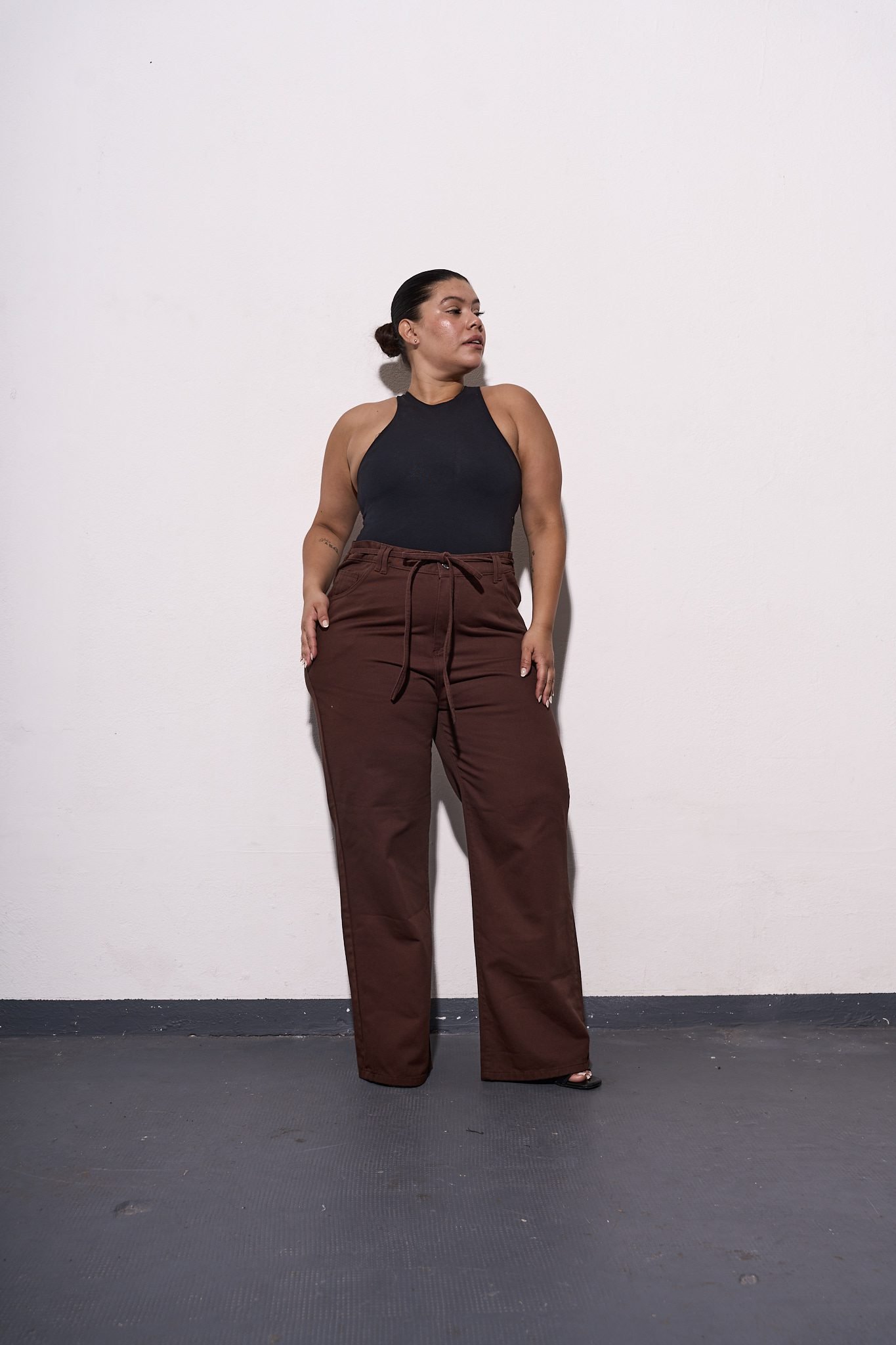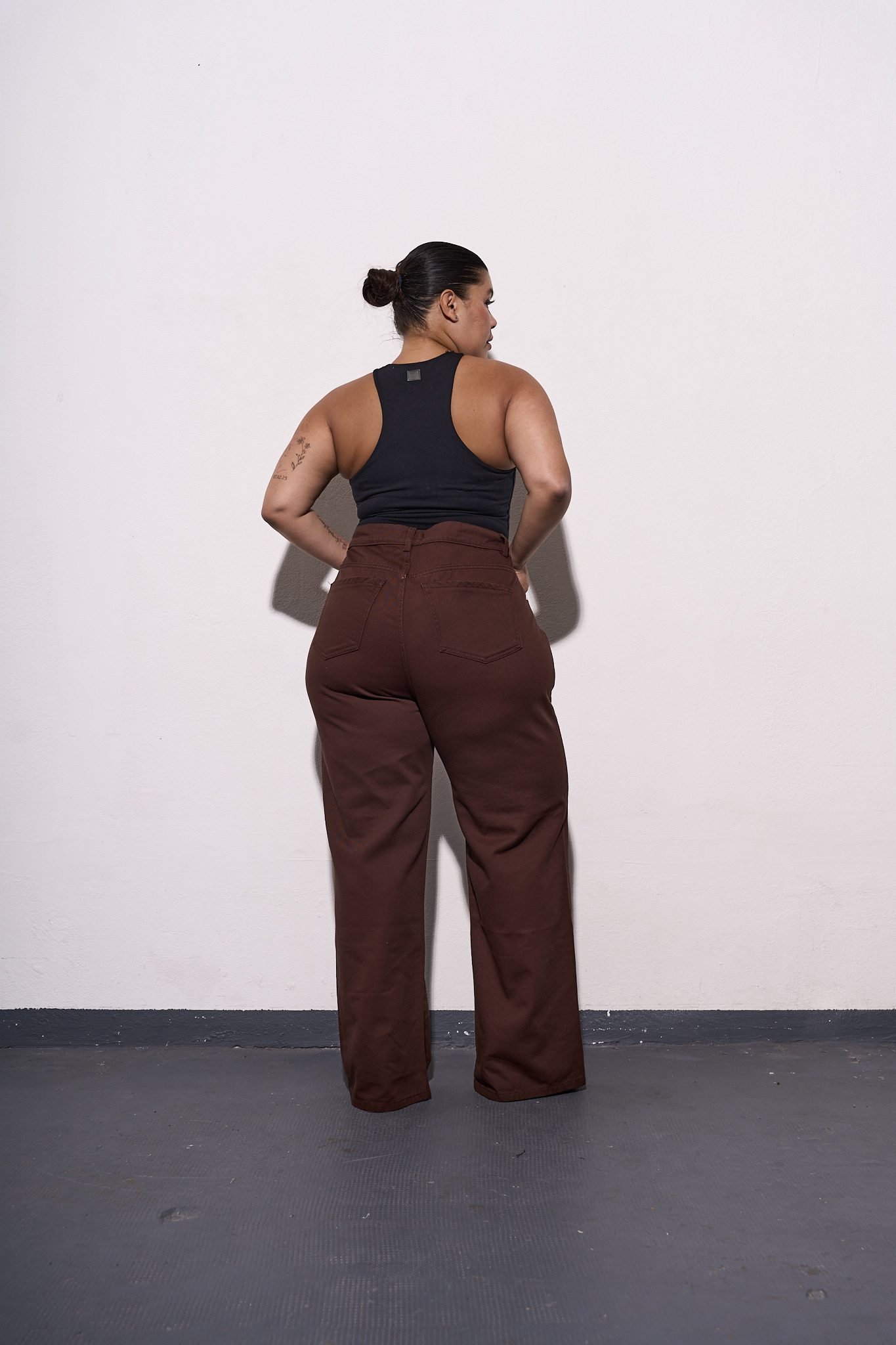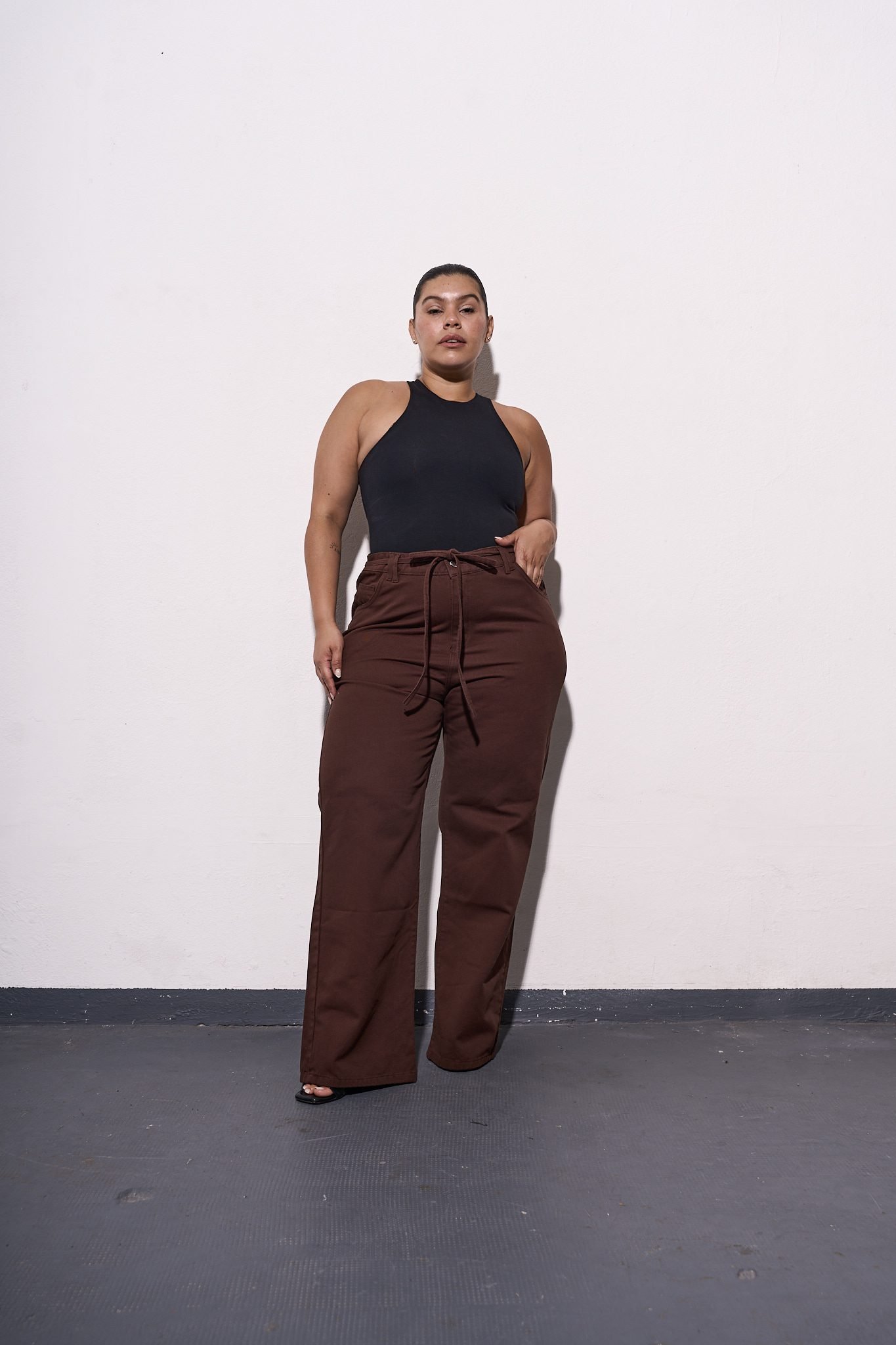 MAXI WIDELEG BEGONIA CHOCOLATE CON TIRA. De tela rígida con ruedo clásico.