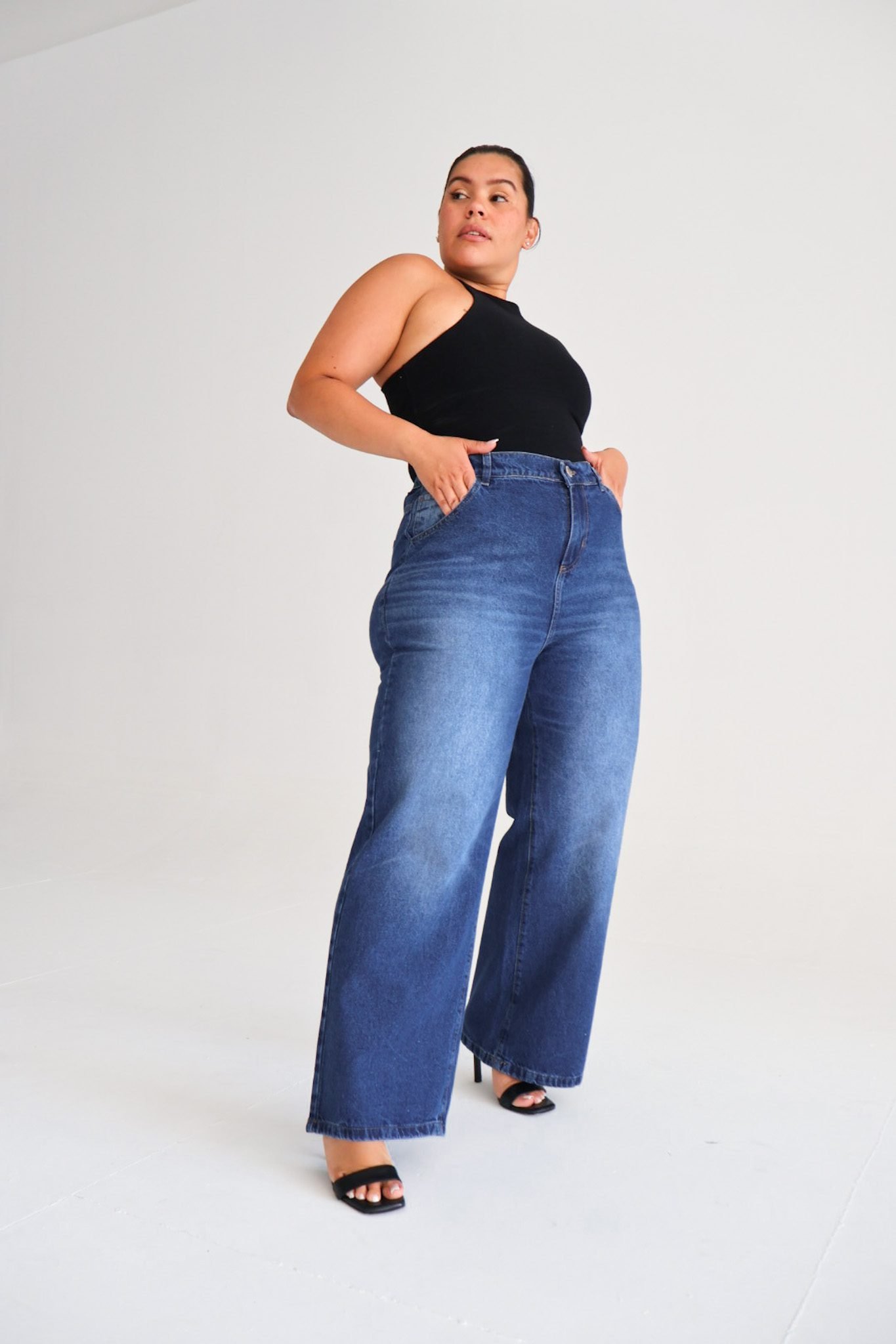 MAXI WIDELEG LEONE BIGOTE. De tela rígida con ruedo clásico.