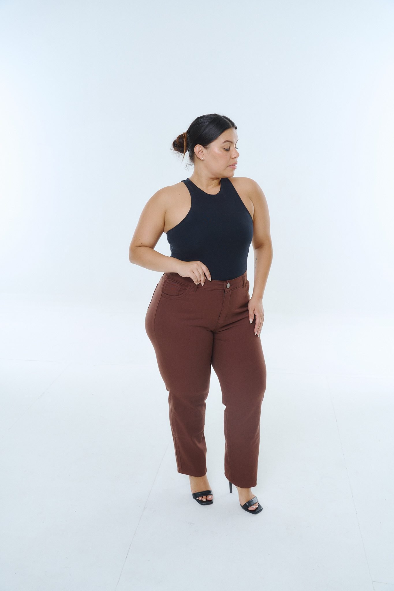 RECTO HEIZE CHOCOLATE. De tela elastizada y ruedo clásico.