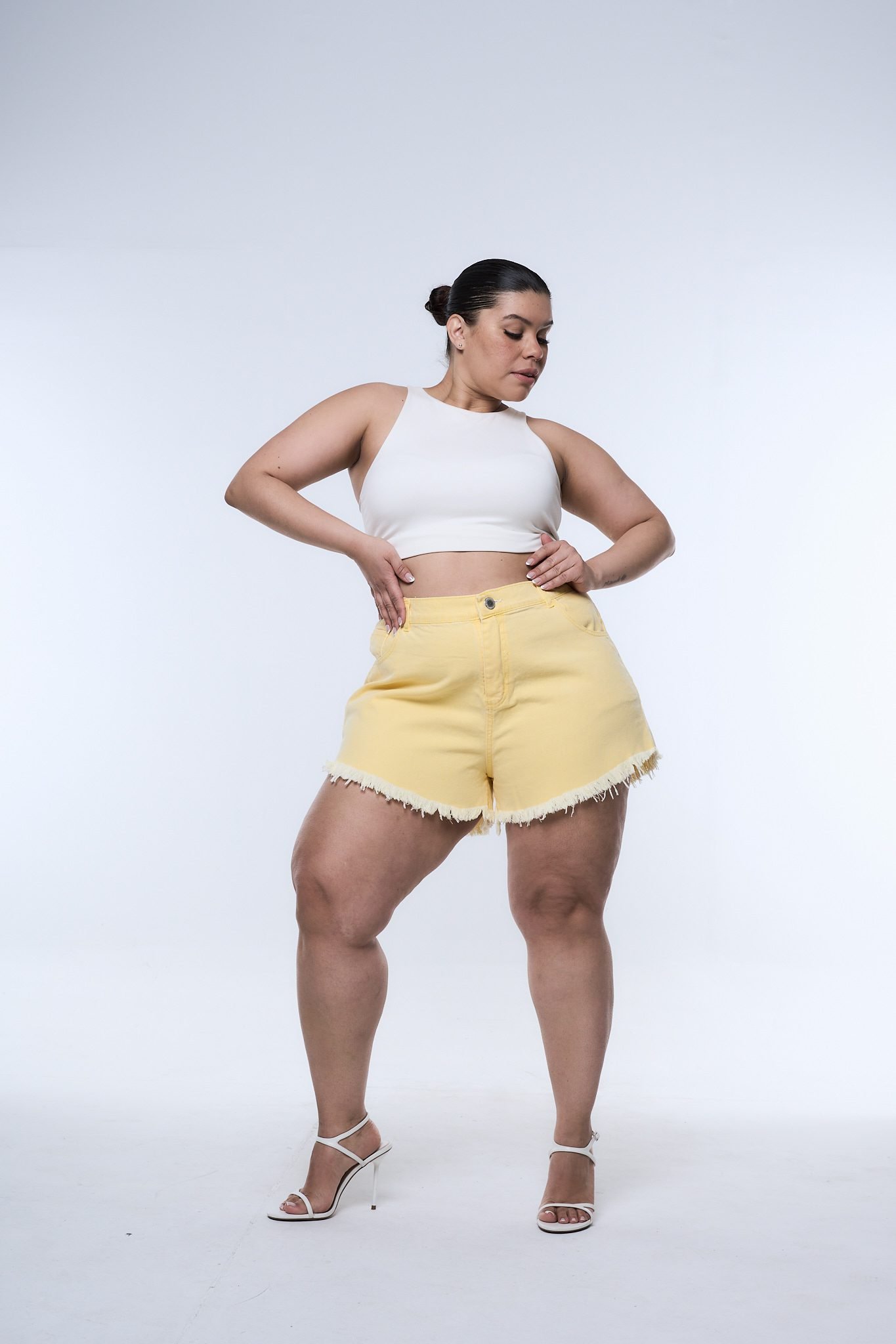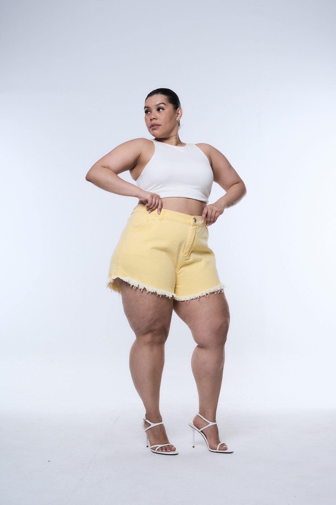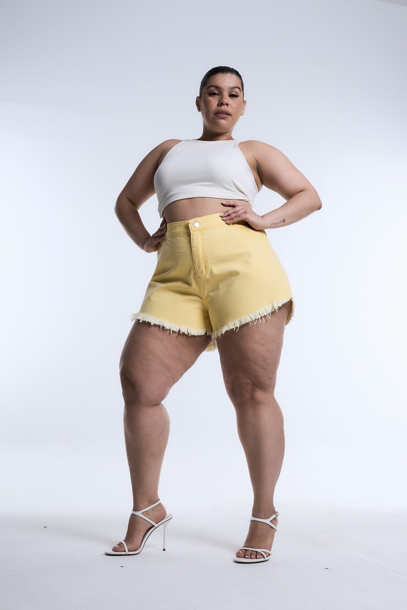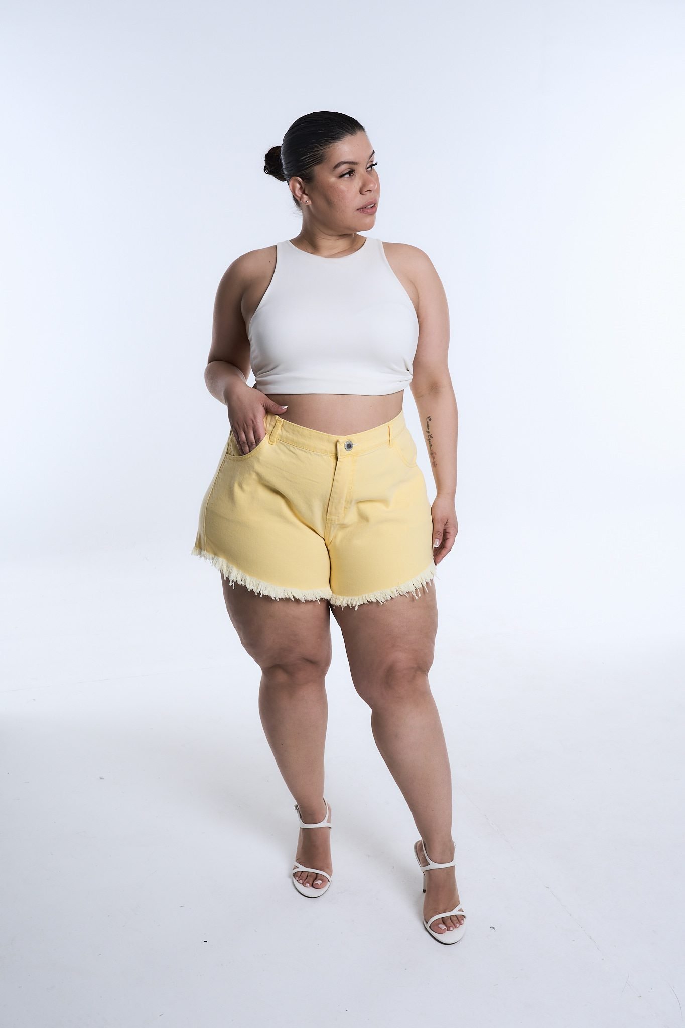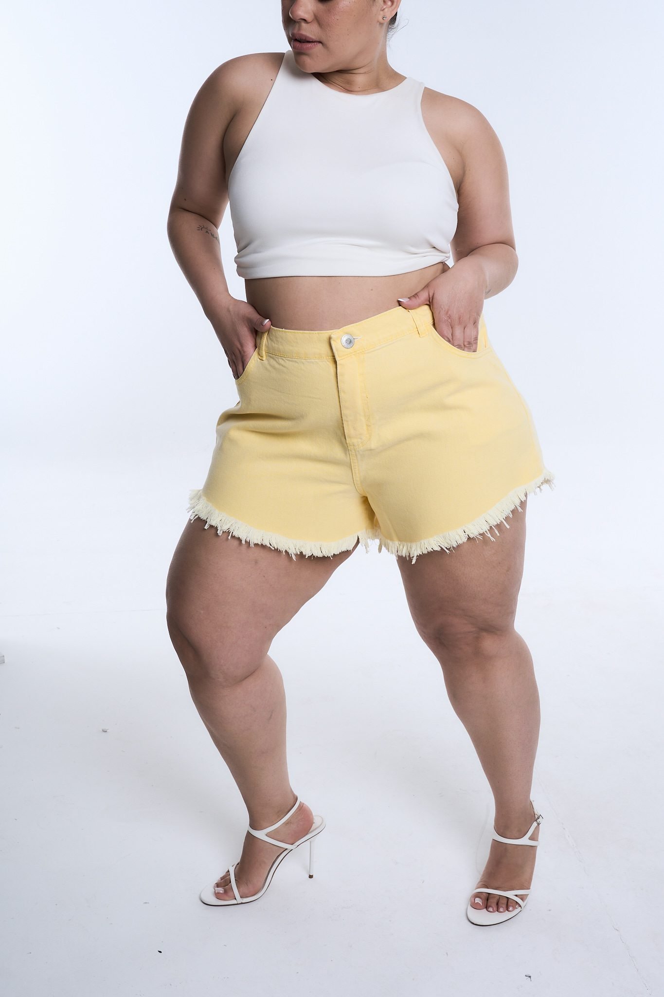 SHORT AMANDIA DESFLECADO. De tela rígida con ruedo desflecado.