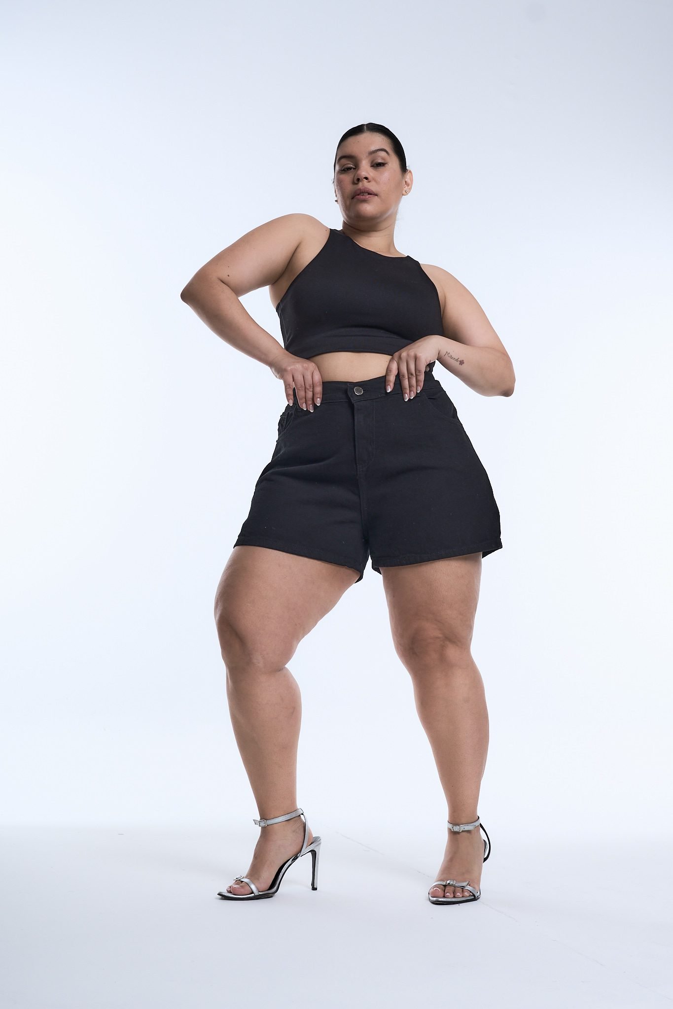 SHORT BLAMIA. De tela rígida con ruedo clásico.