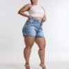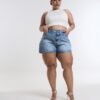 SHORT EUCALYPTO NEVADO BIGOTE. De tela rígida con ruedo clásico.