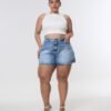 SHORT EUCALYPTO NEVADO BIGOTE. De tela rígida con ruedo clásico.