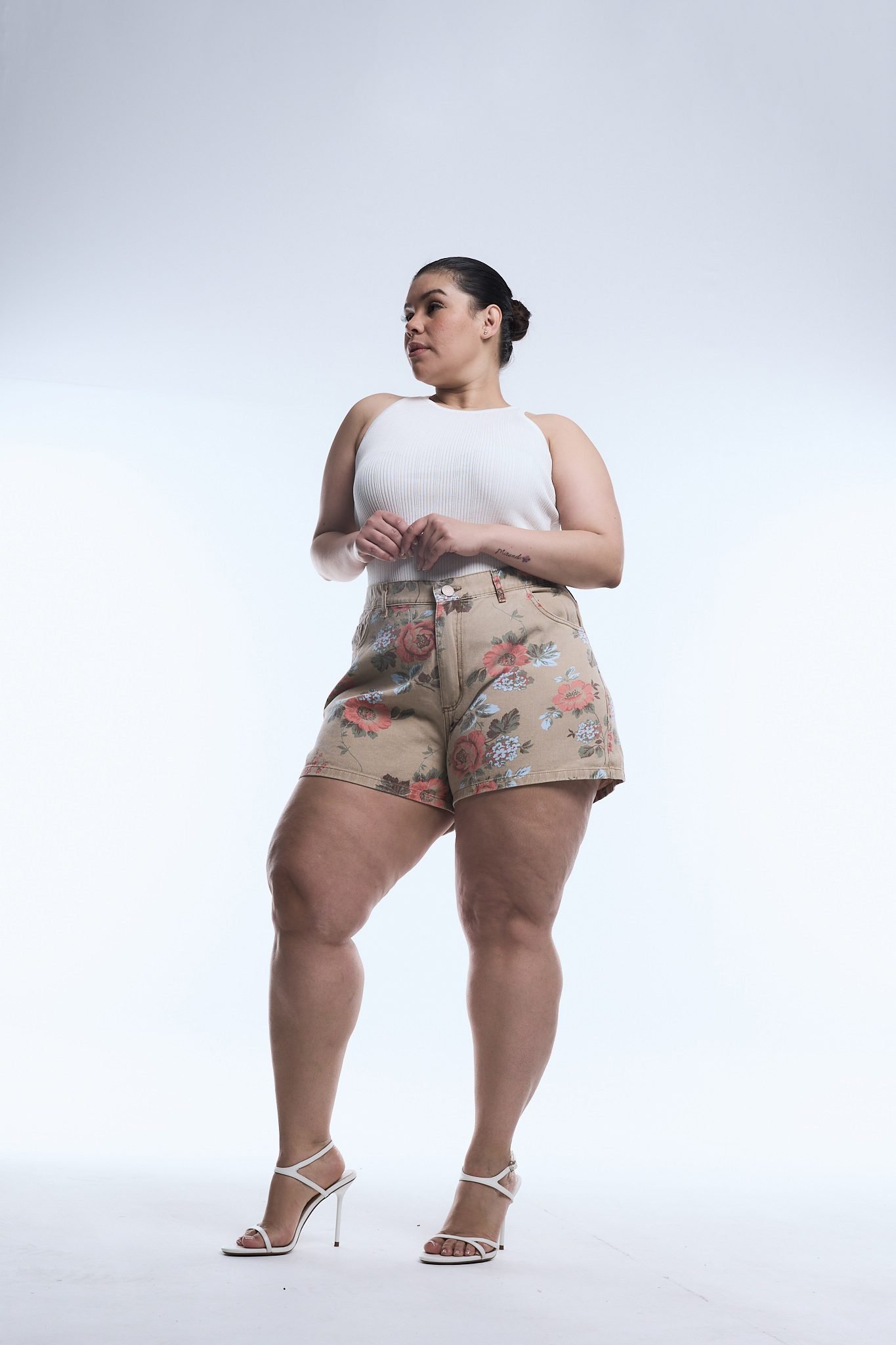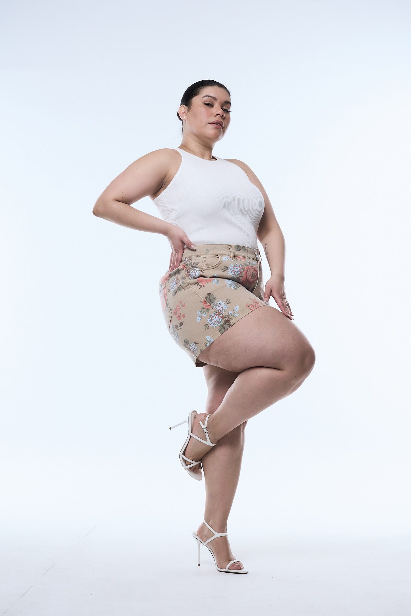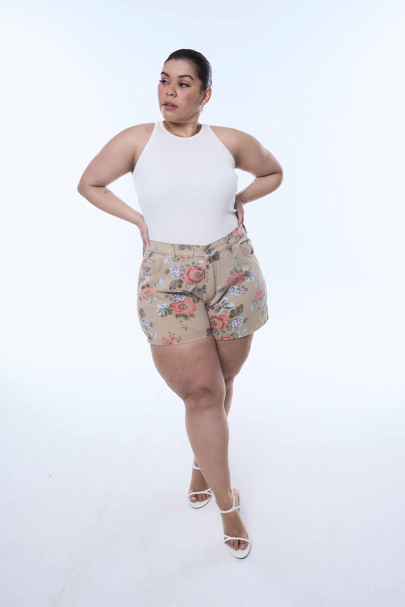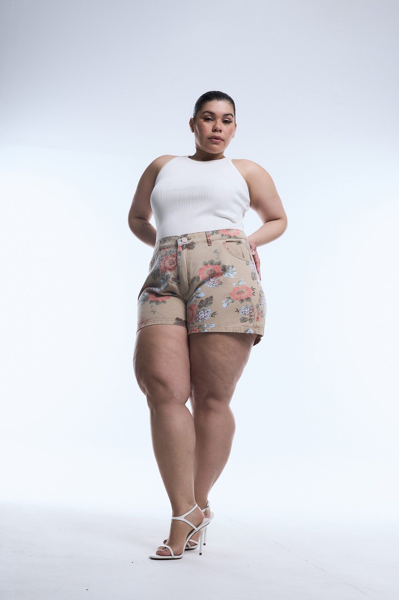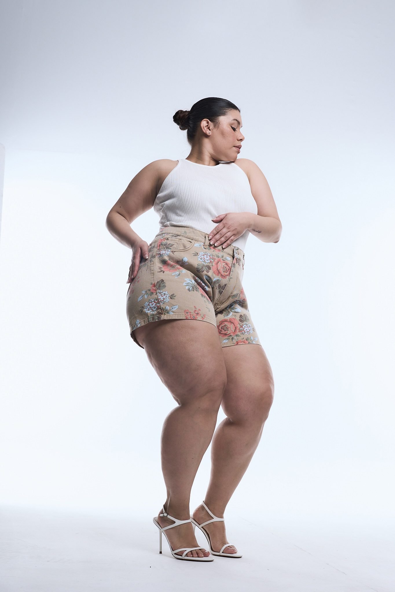 SHORT FLORITH. De tela rígida con ruedo clásico.