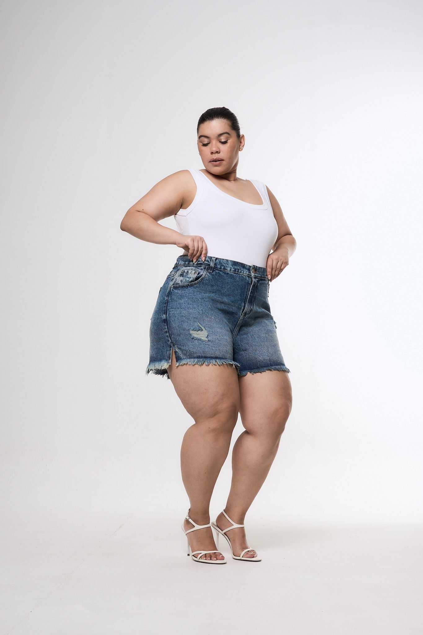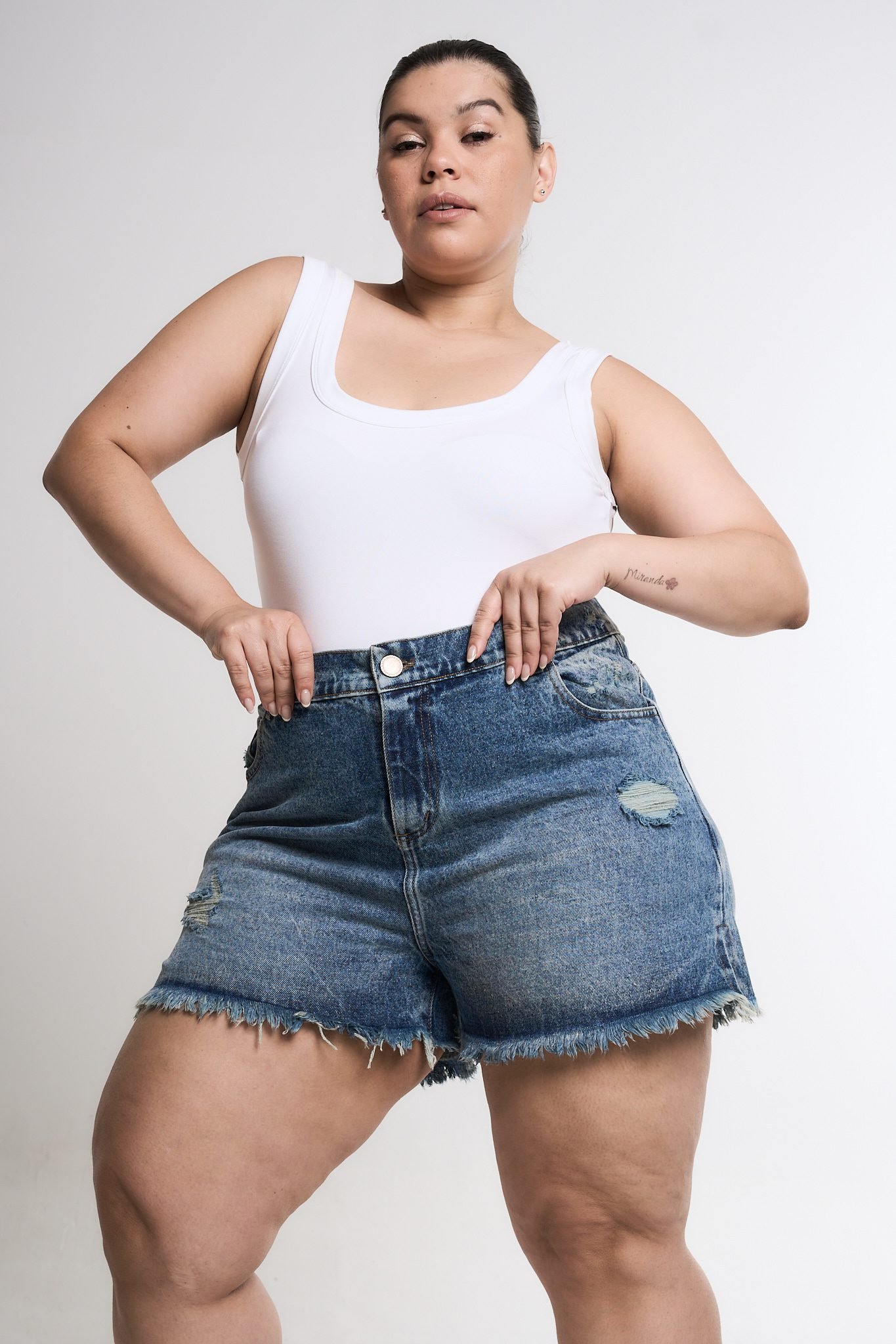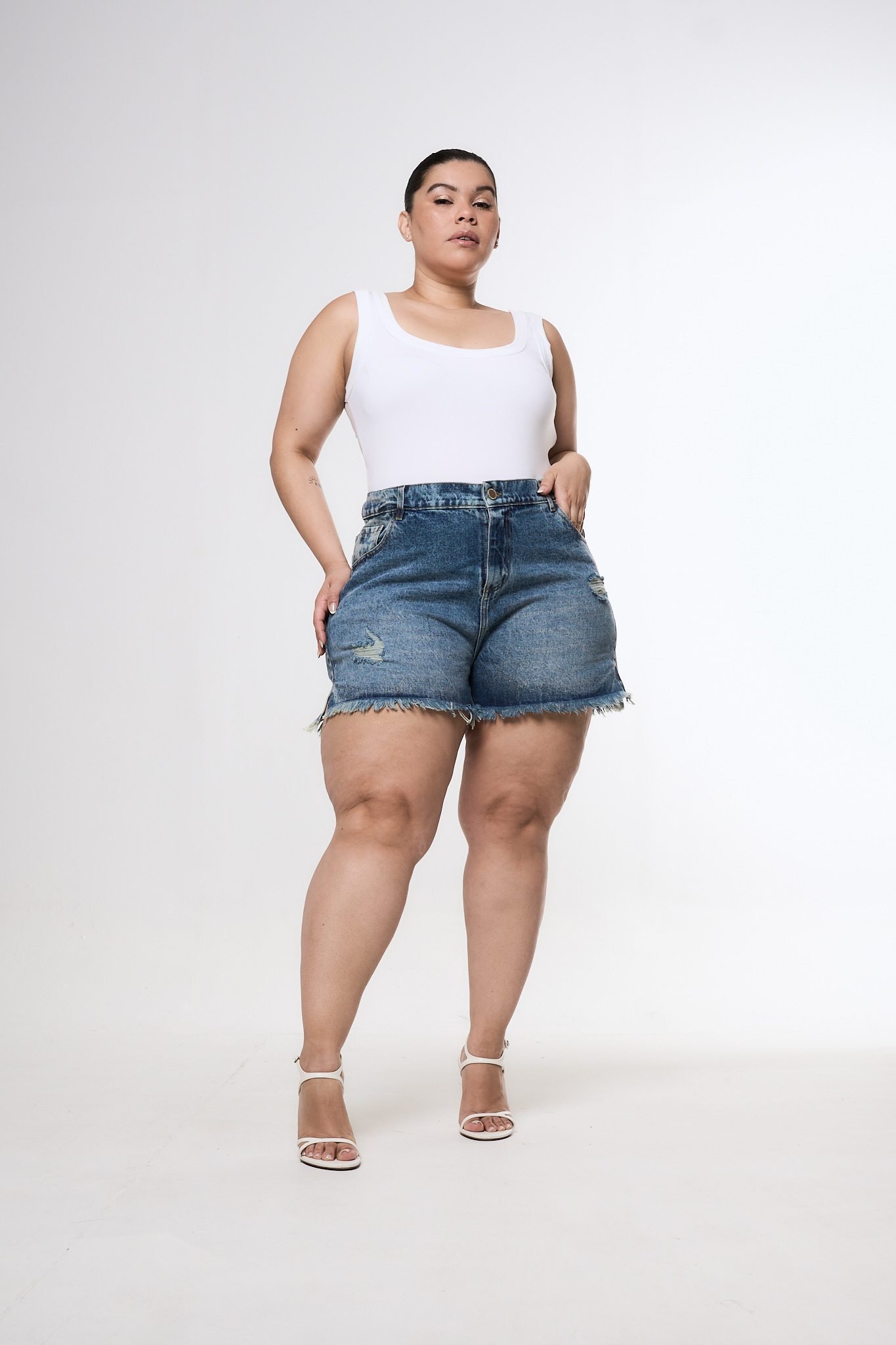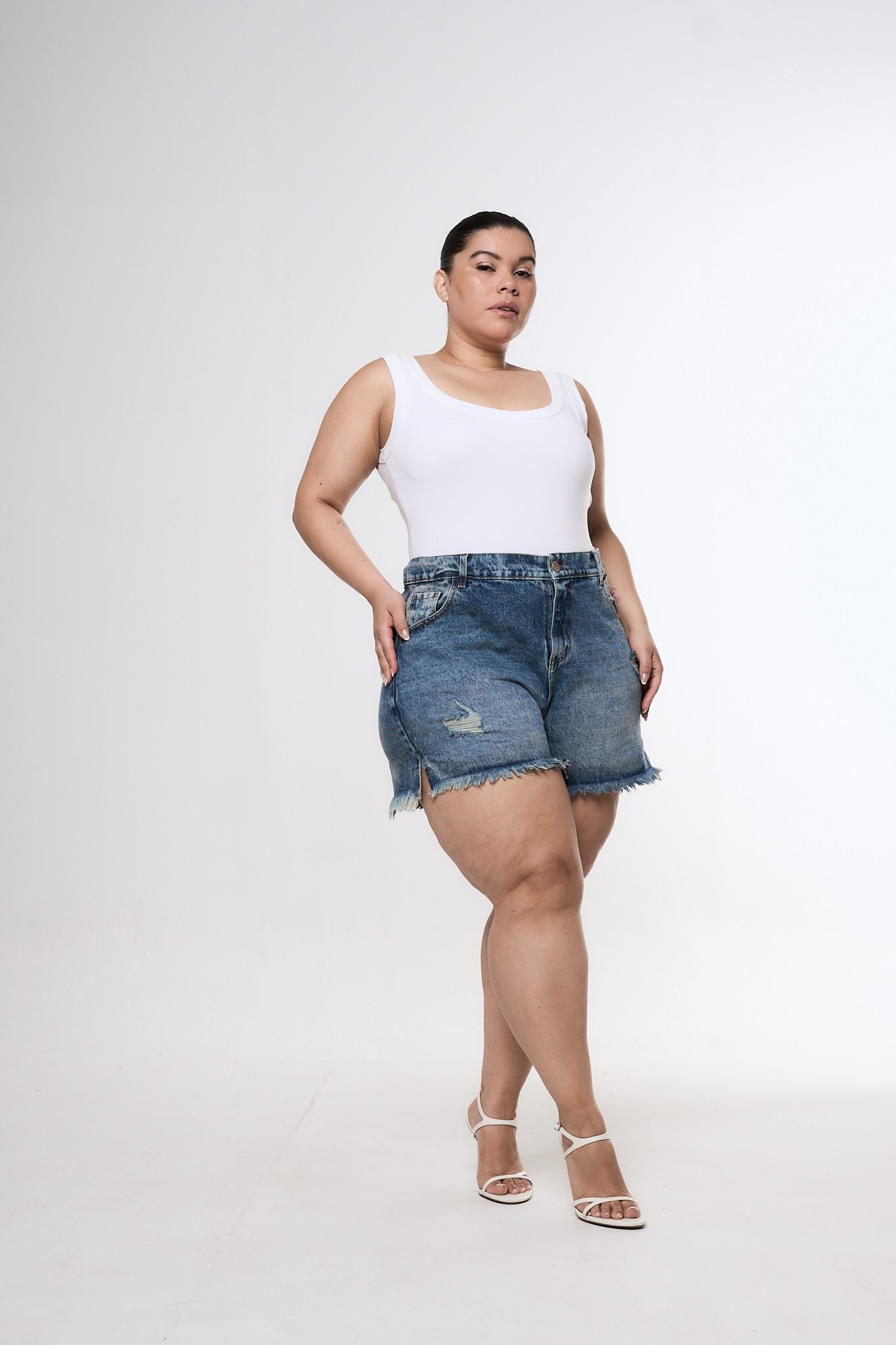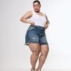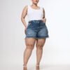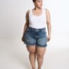 SHORT ORYA TAJO ROTURA BIGOTE MATIZADO. De tela rígida y ruedo con fleco.