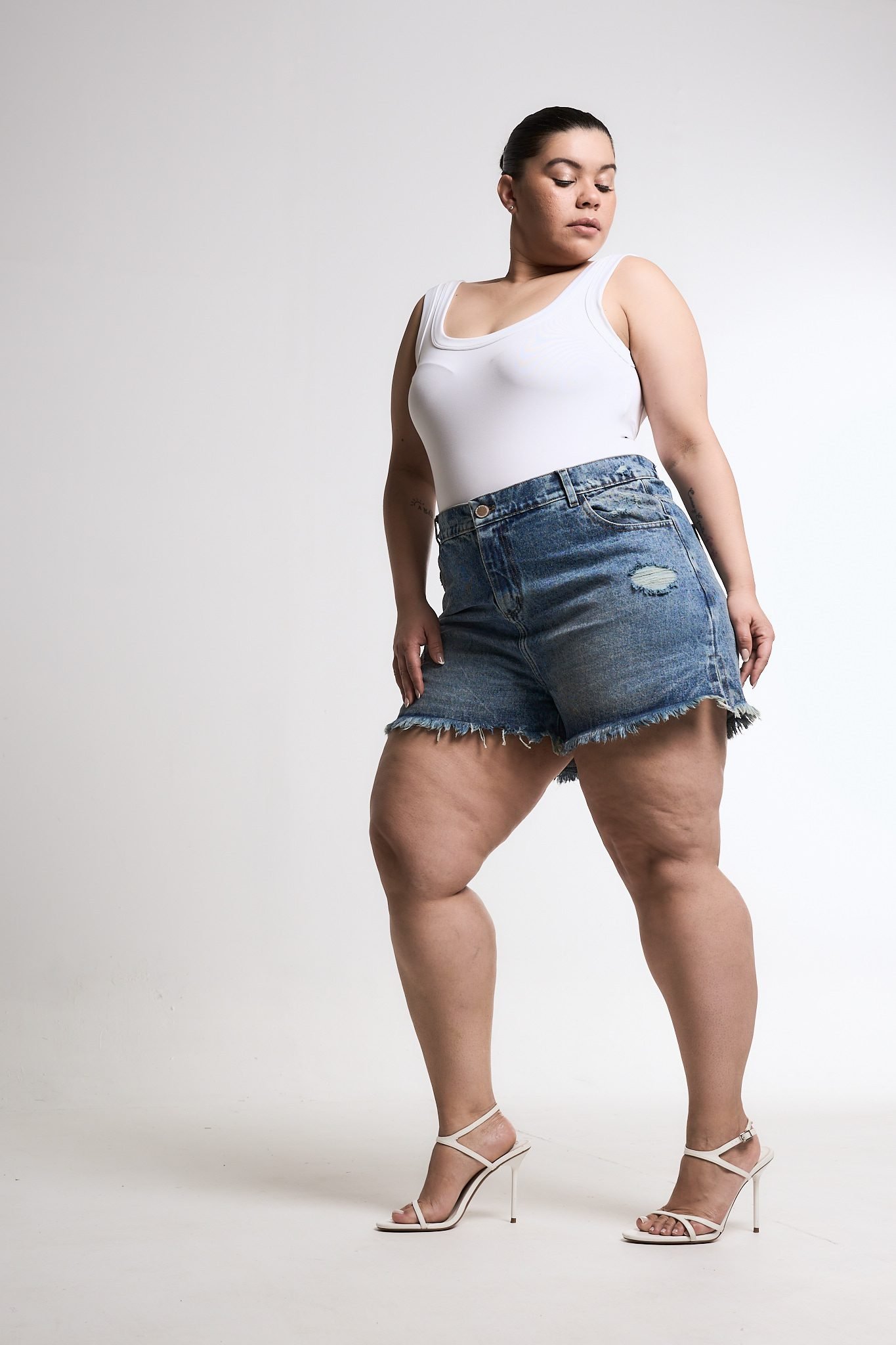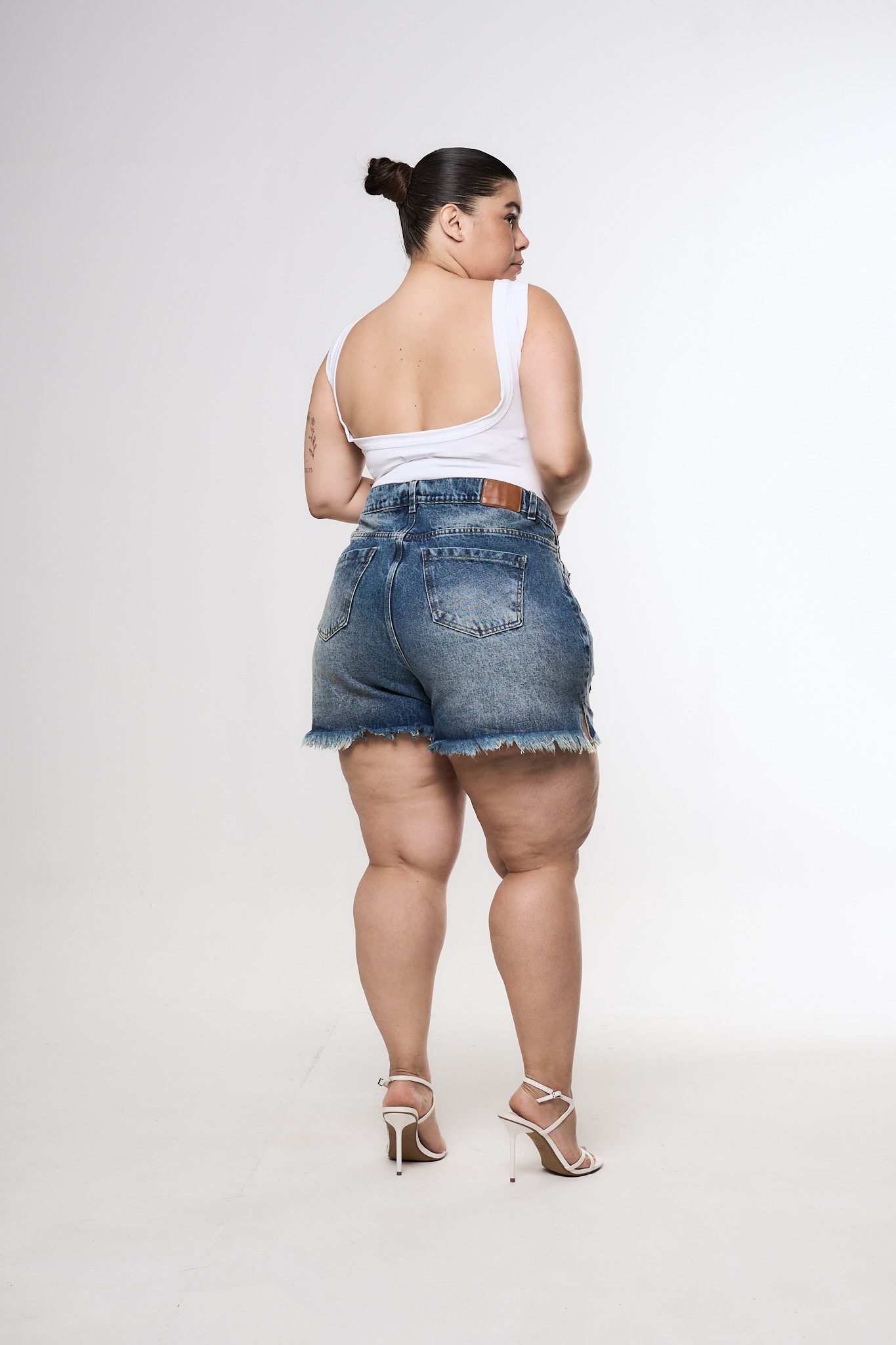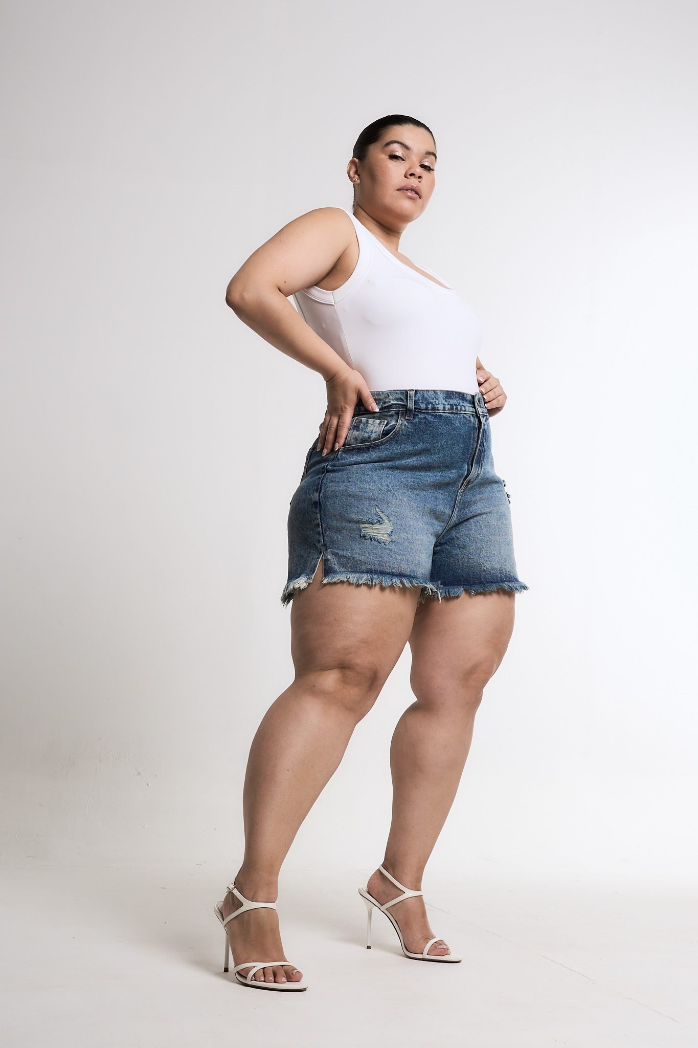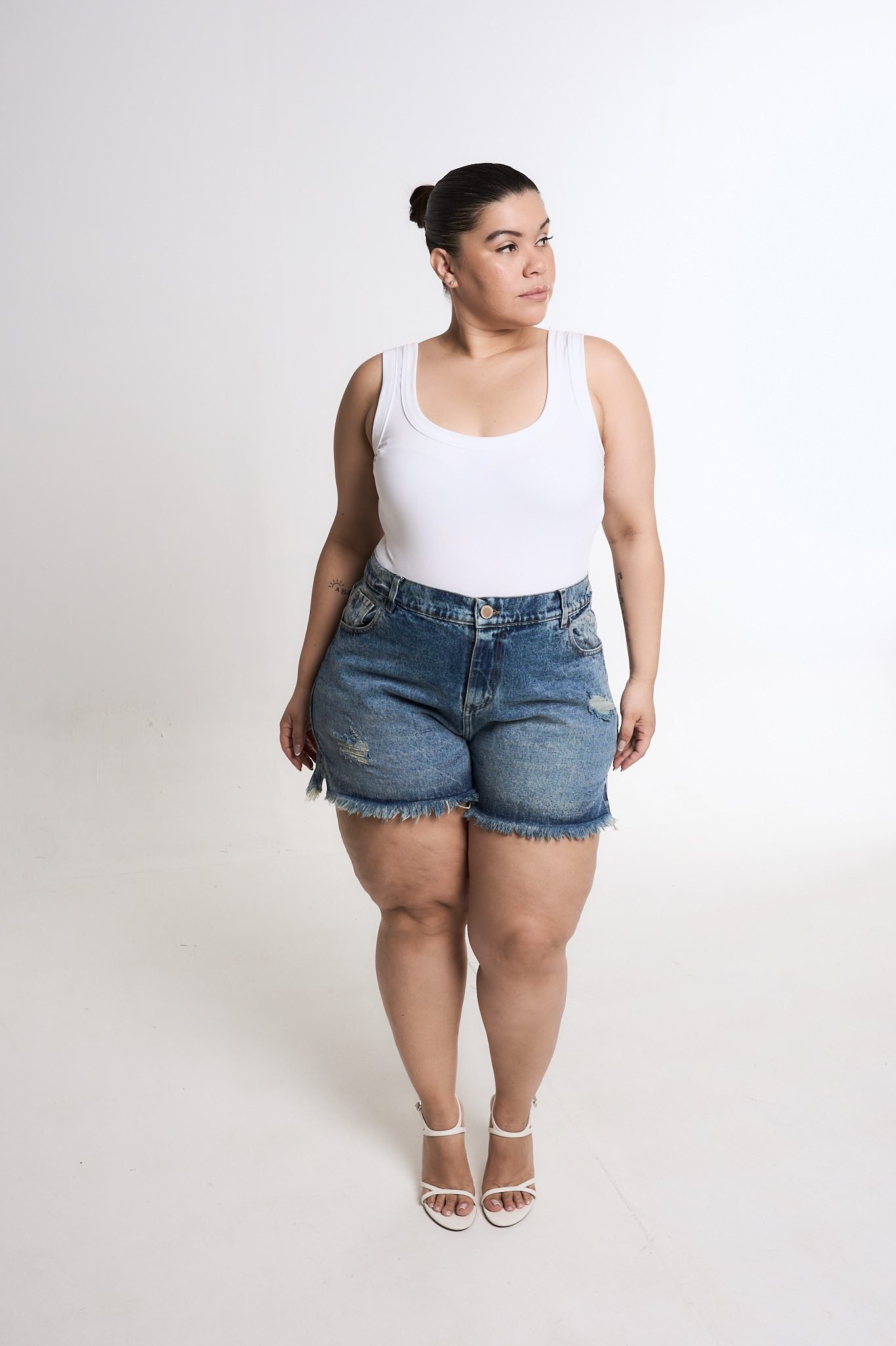 SHORT ORYA TAJO ROTURA BIGOTE MATIZADO. De tela rígida y ruedo con fleco.