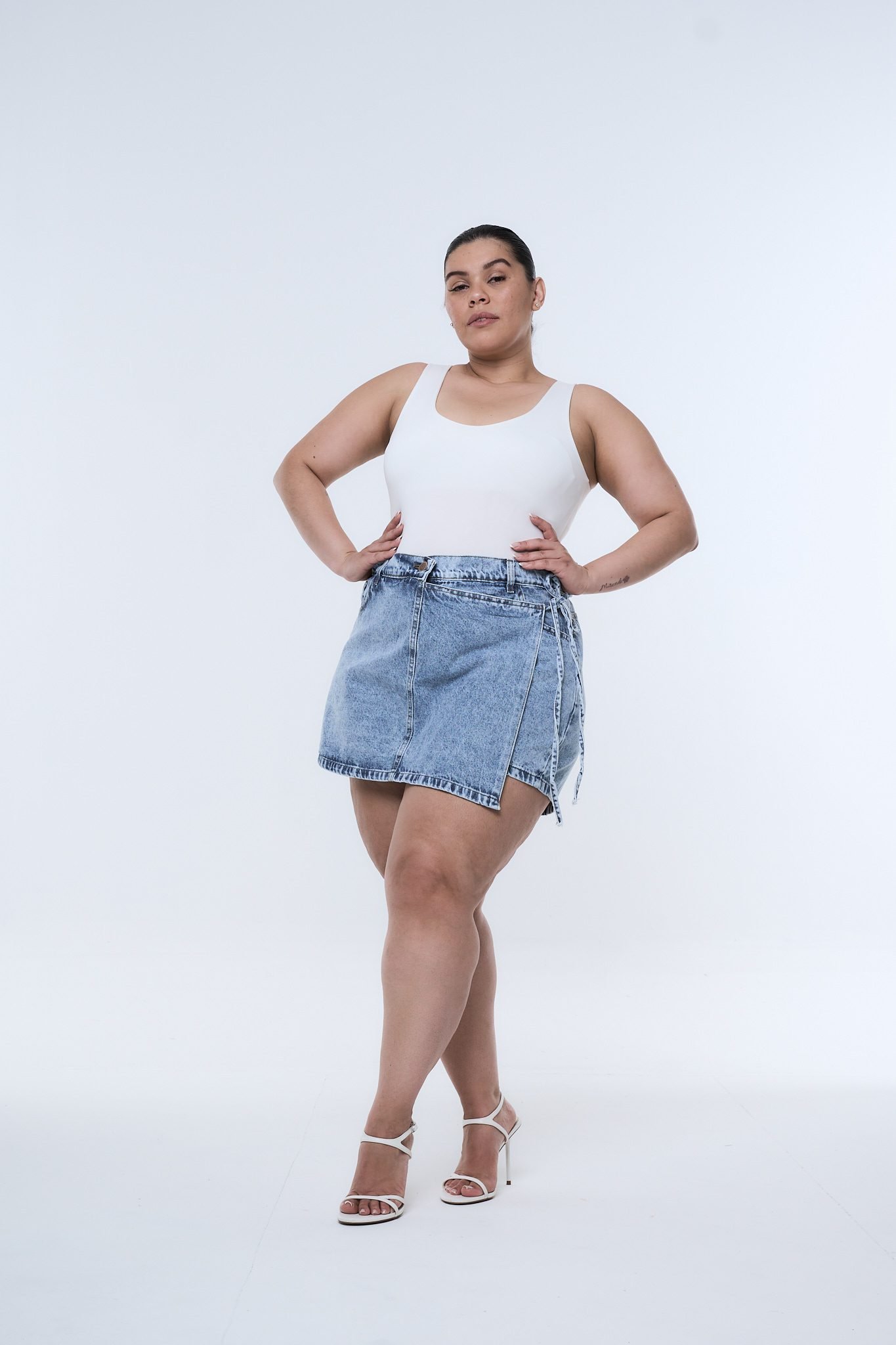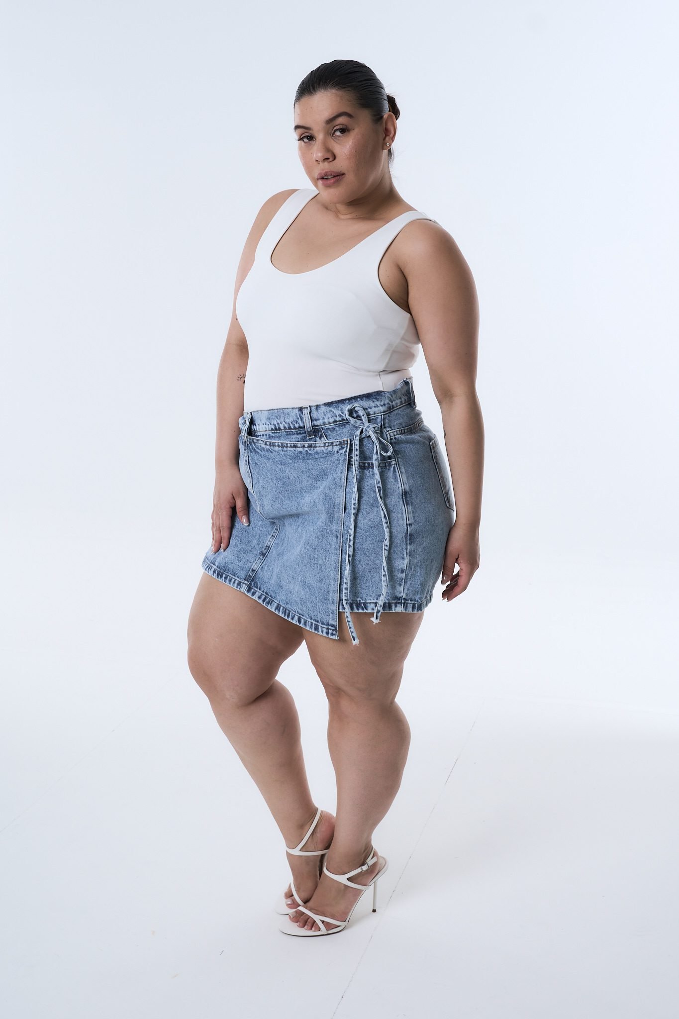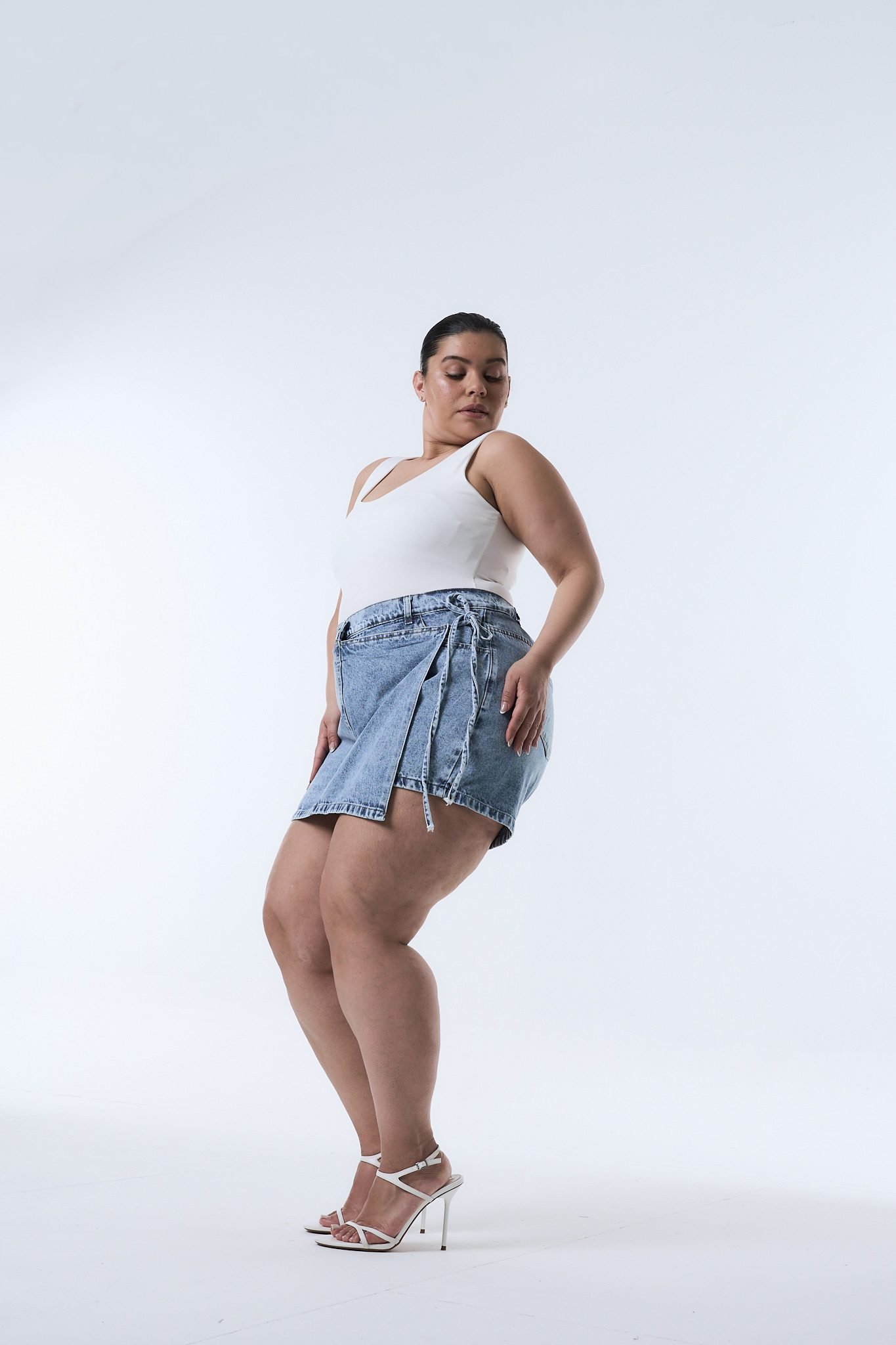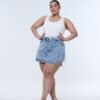 SHORT-POLLERA DIOMAR NEVADO LAZO. De tela rígida con ruedo clásico.