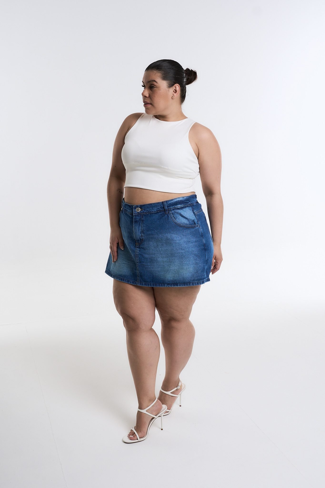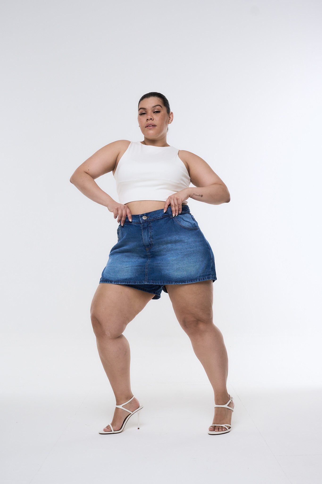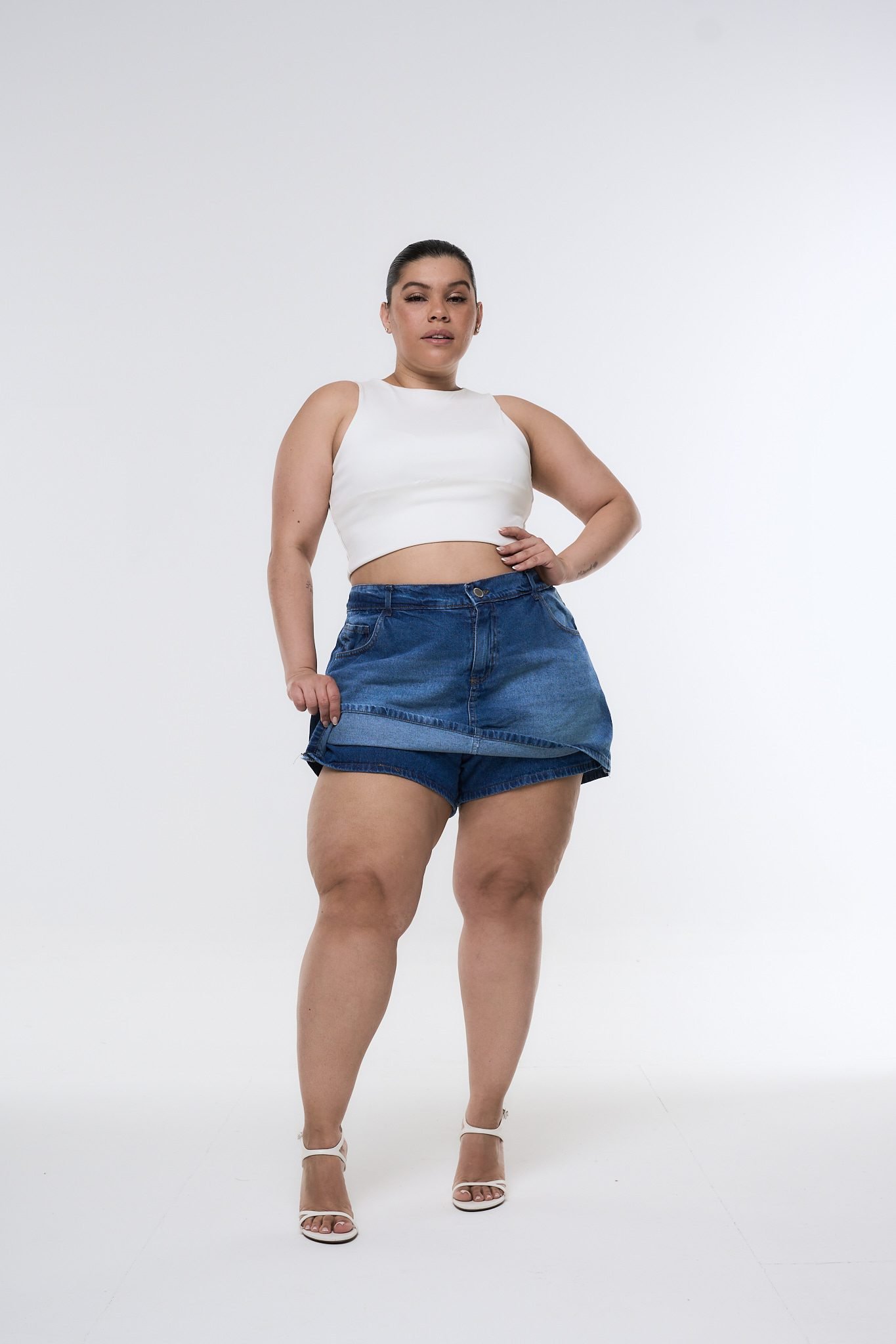 SHORT-POLLERA MELYA BIGOTE. De tela rígida con ruedo clásico.