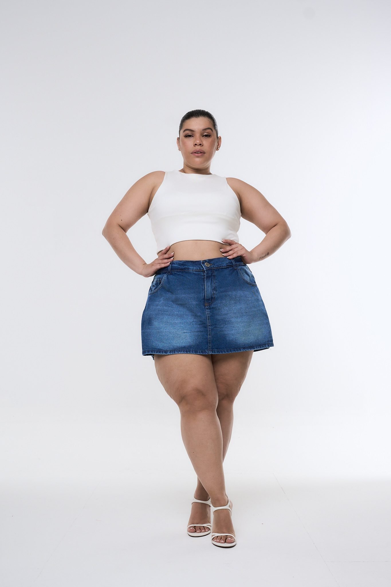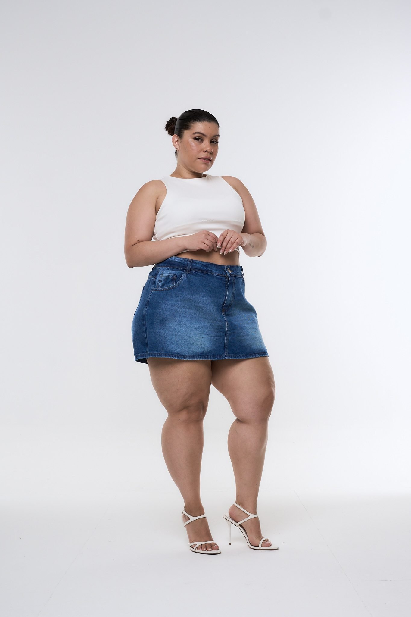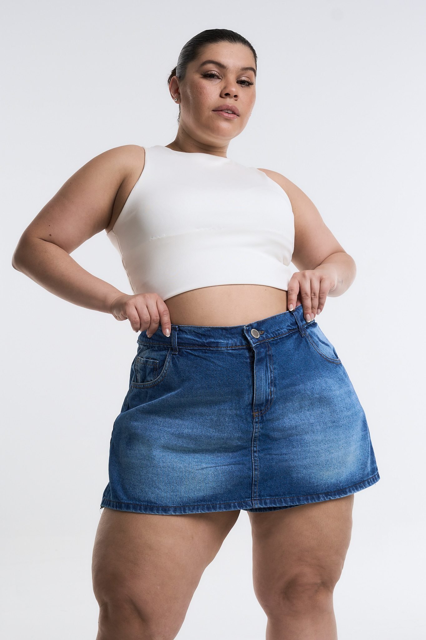 SHORT-POLLERA MELYA BIGOTE. De tela rígida con ruedo clásico.