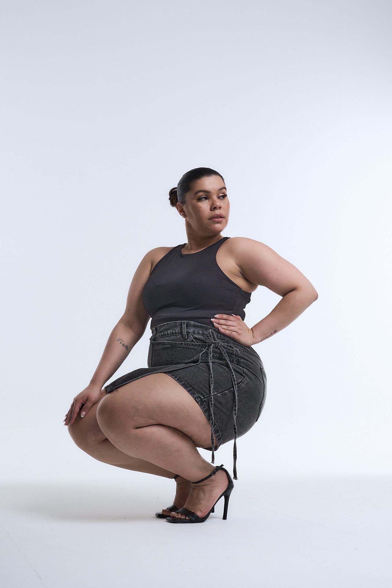 SHORT-POLLERA PRADHELIA NEVADO LAZO. De tela rígida con ruedo clásico.