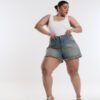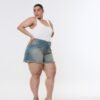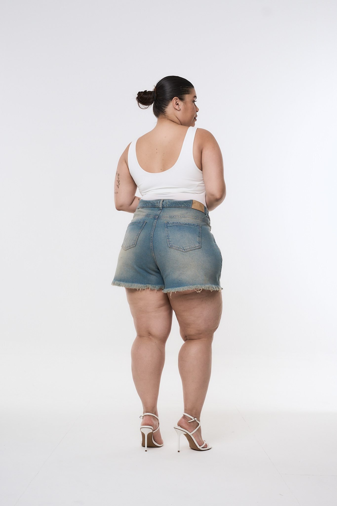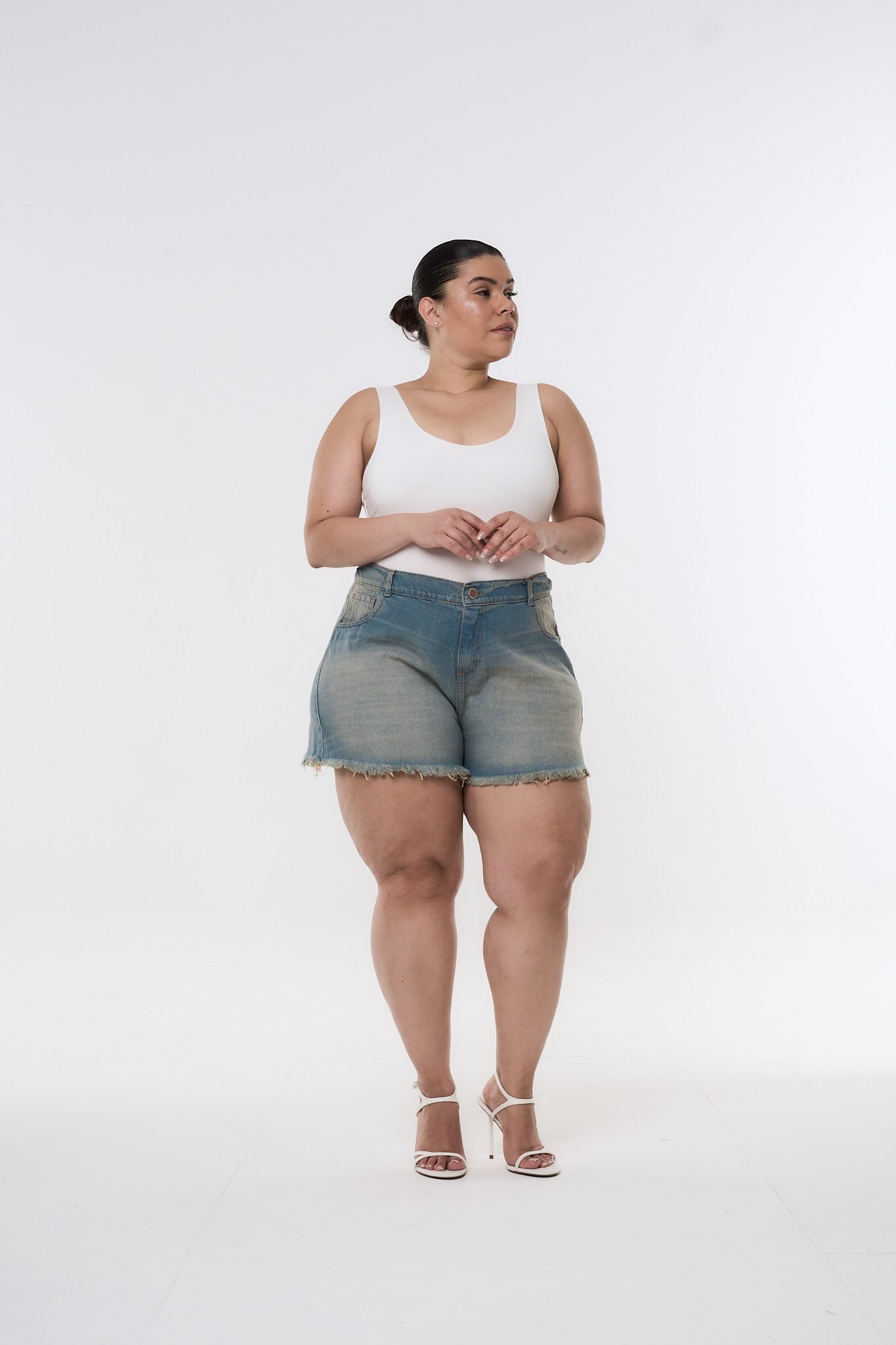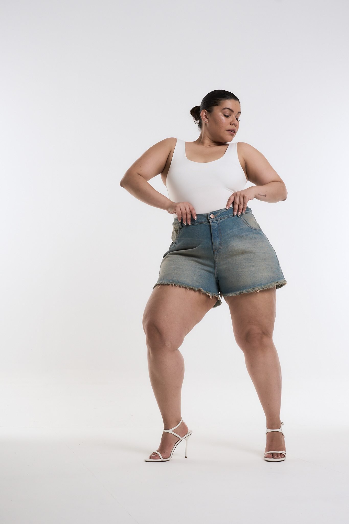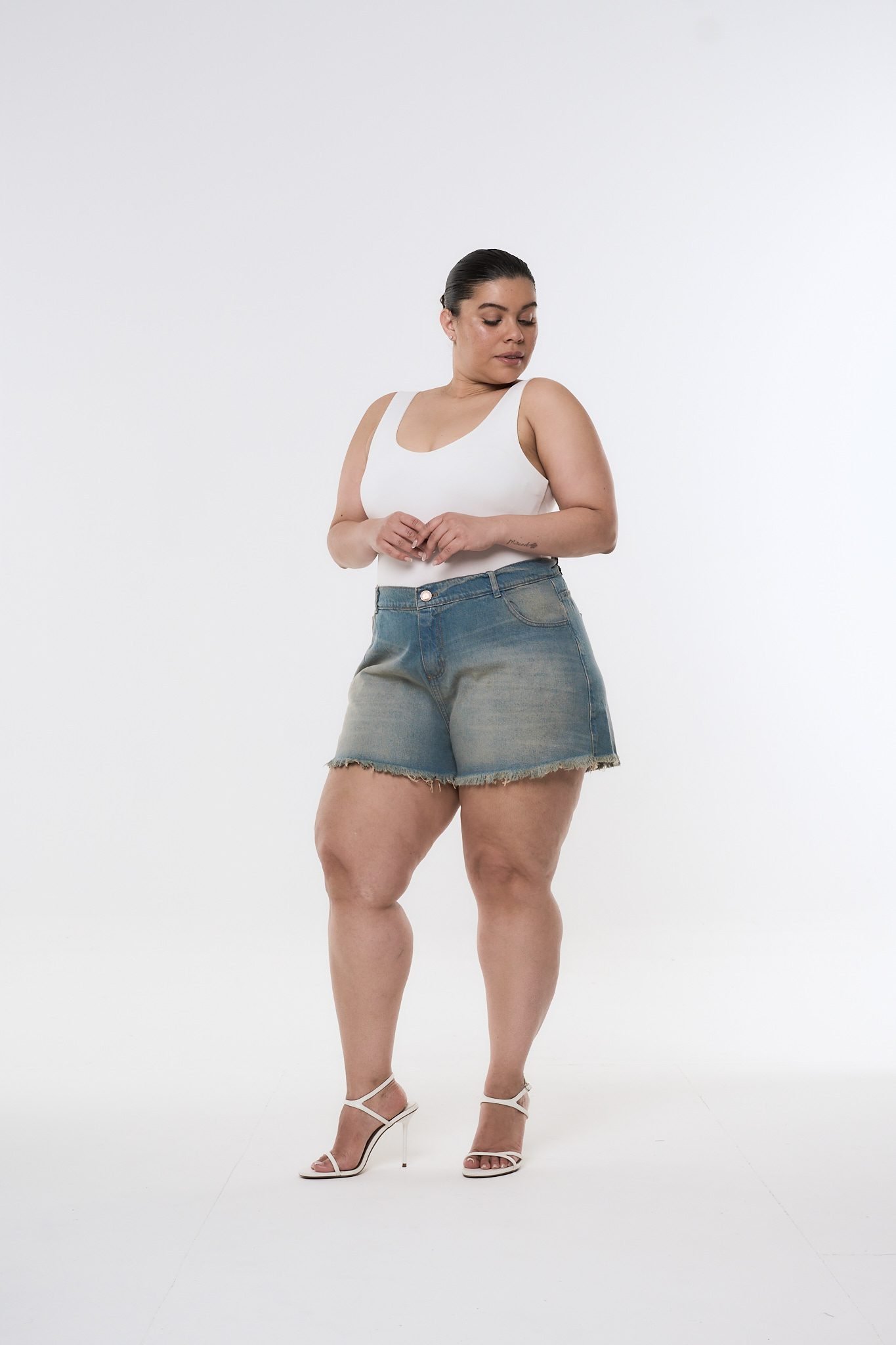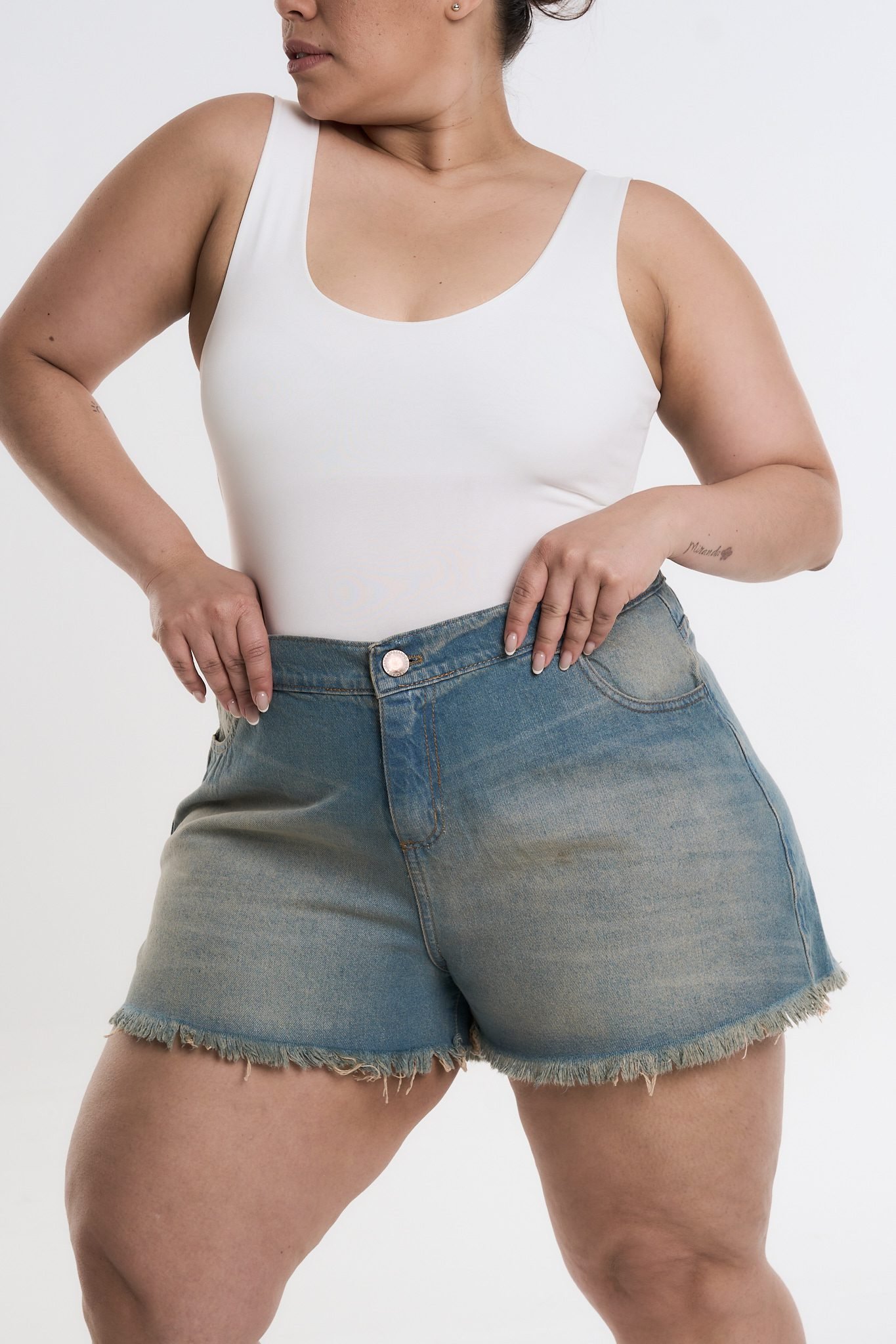 SHORT SEPHYRA BIGOTE MATIZADO. De tela rígida con ruedo desflecado.