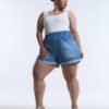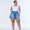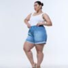 SHORT SOLUNE DOBLADILLO. De tela rígida con ruedo con dobladillo.