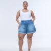 SHORT SOLUNE DOBLADILLO. De tela rígida con ruedo con dobladillo.
