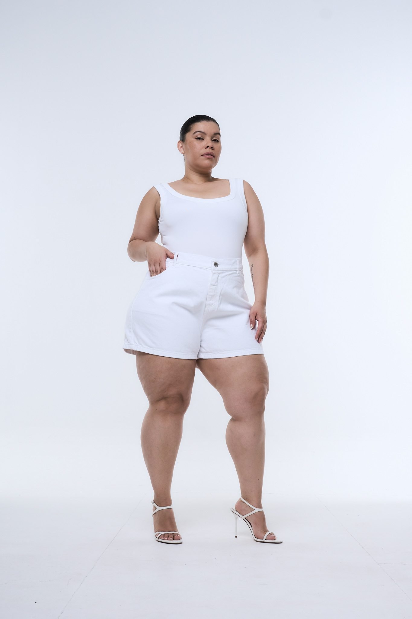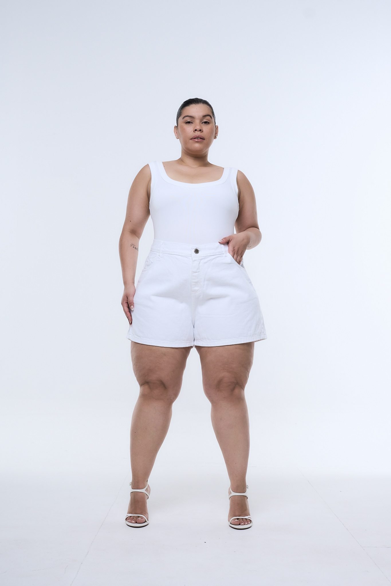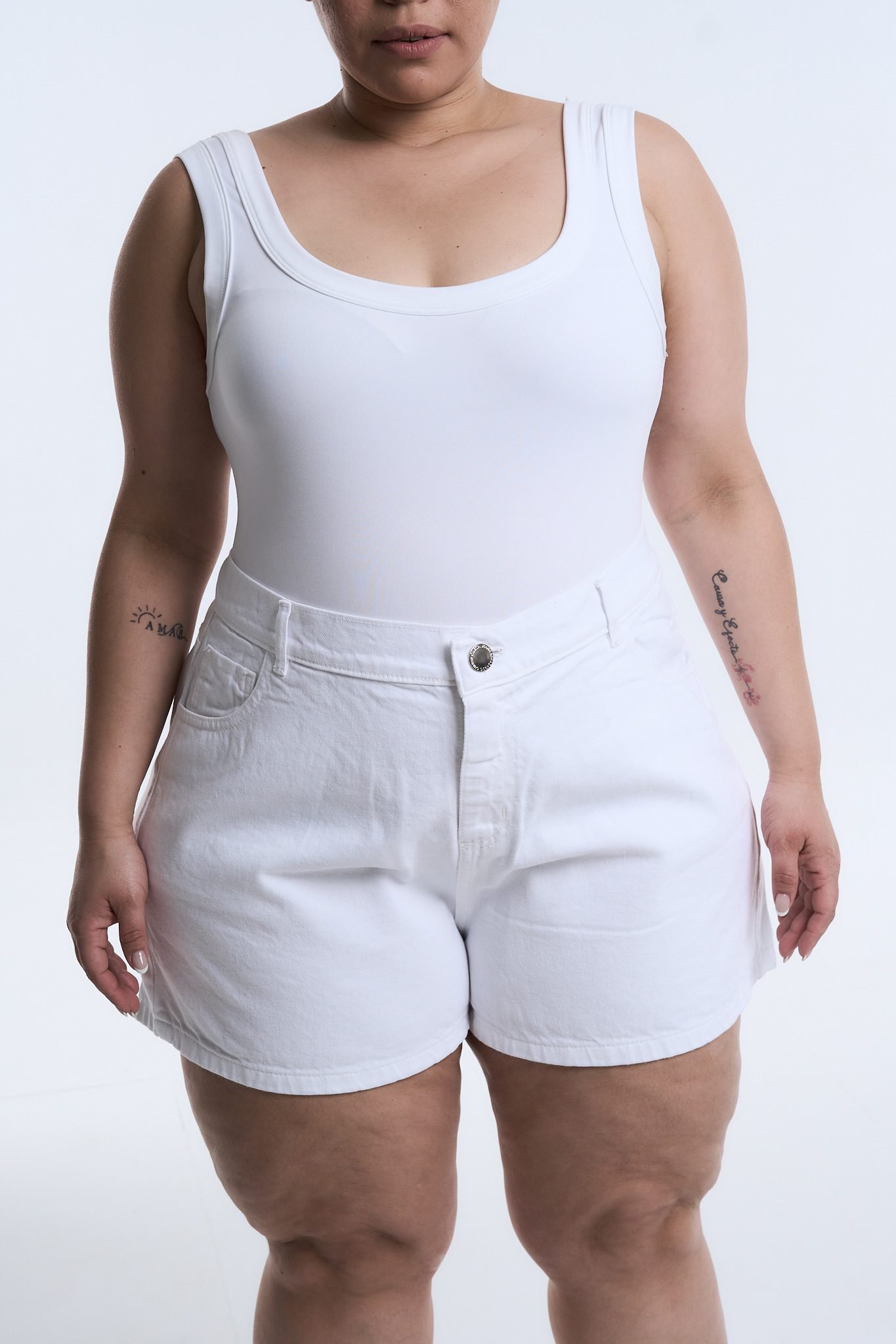 SHORT WHITARA. De tela rígida con ruedo clásico.