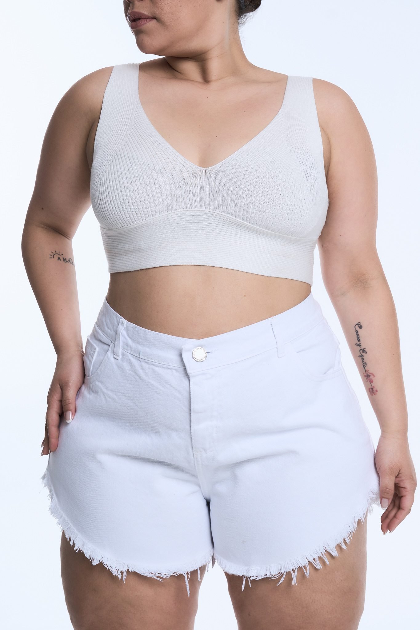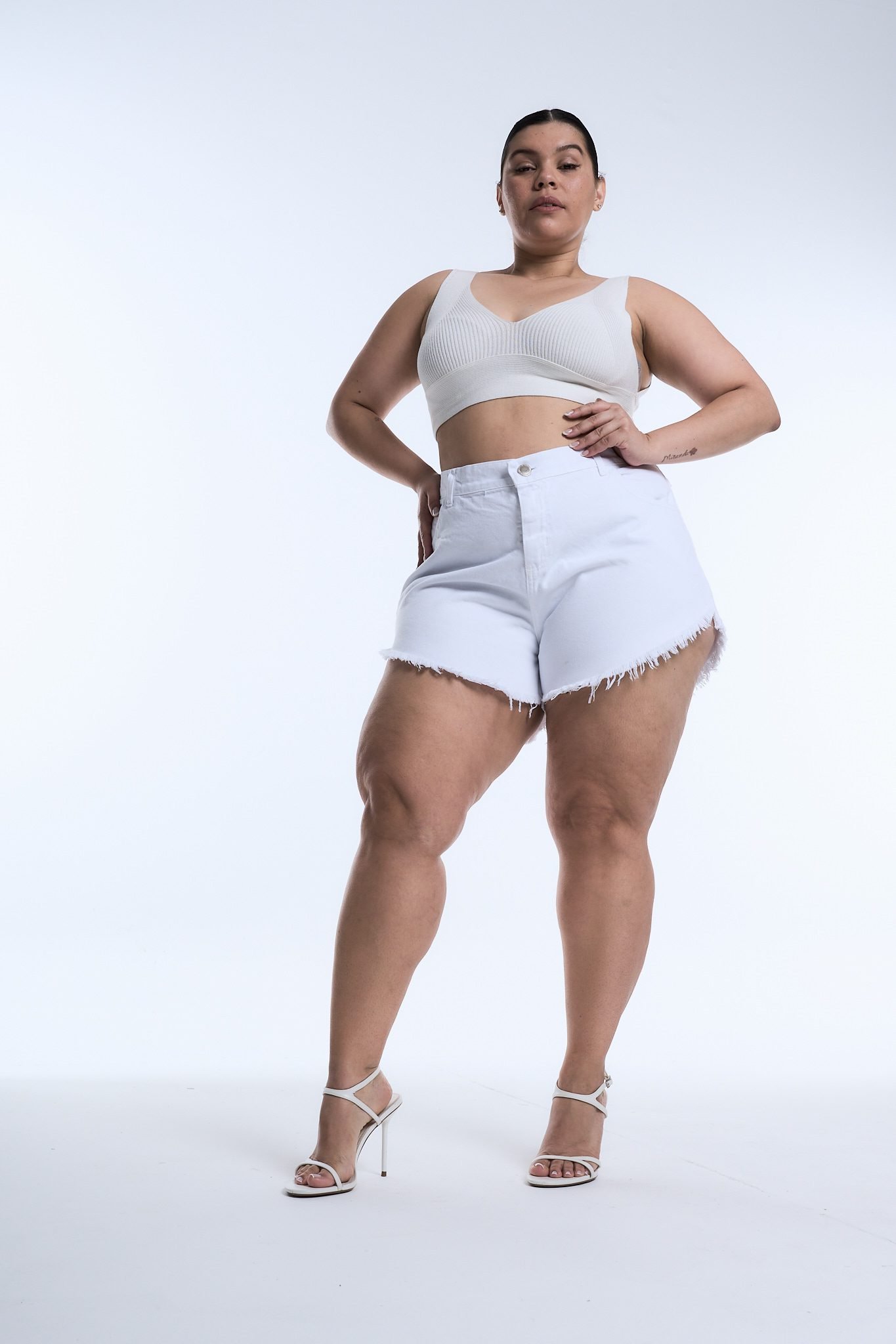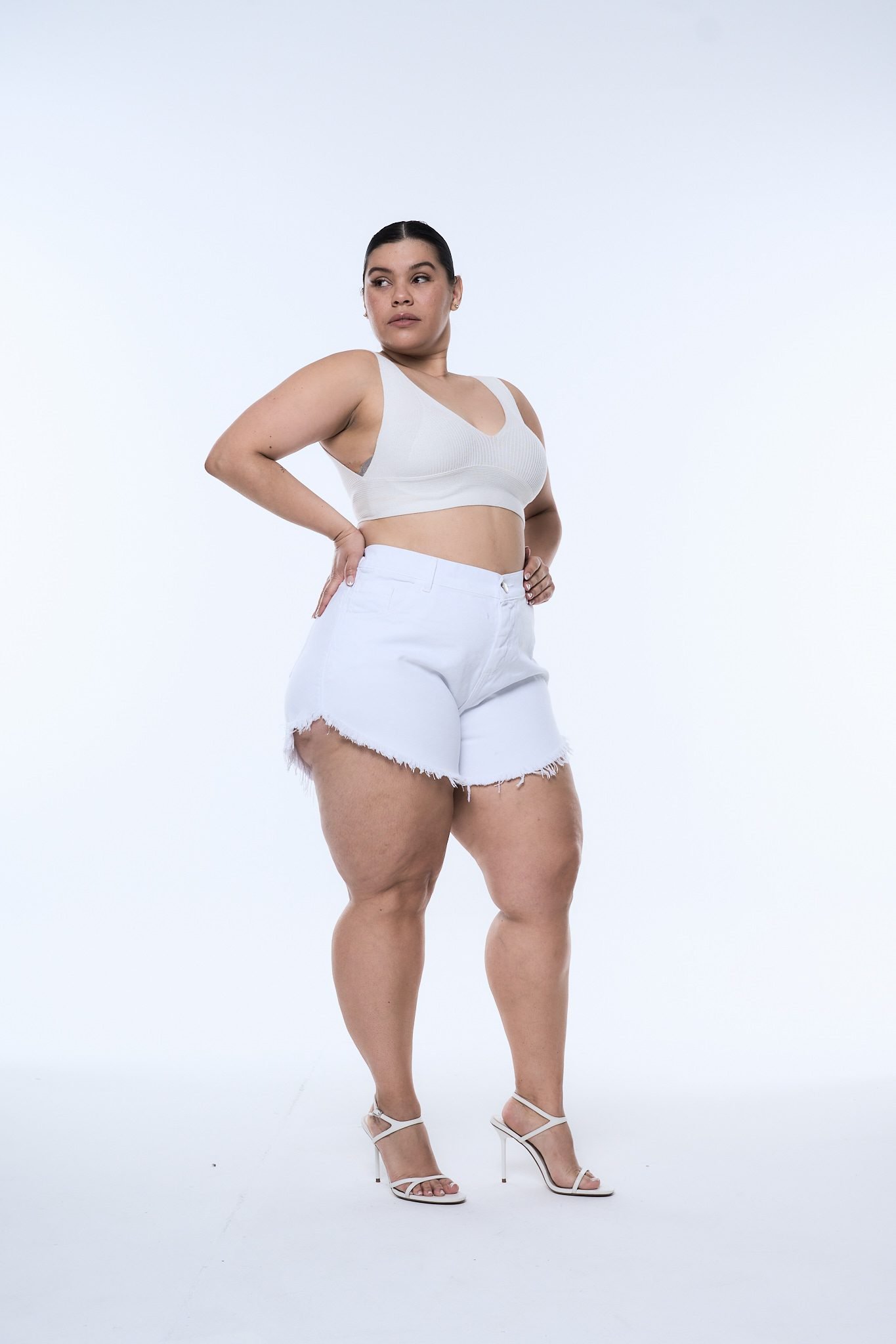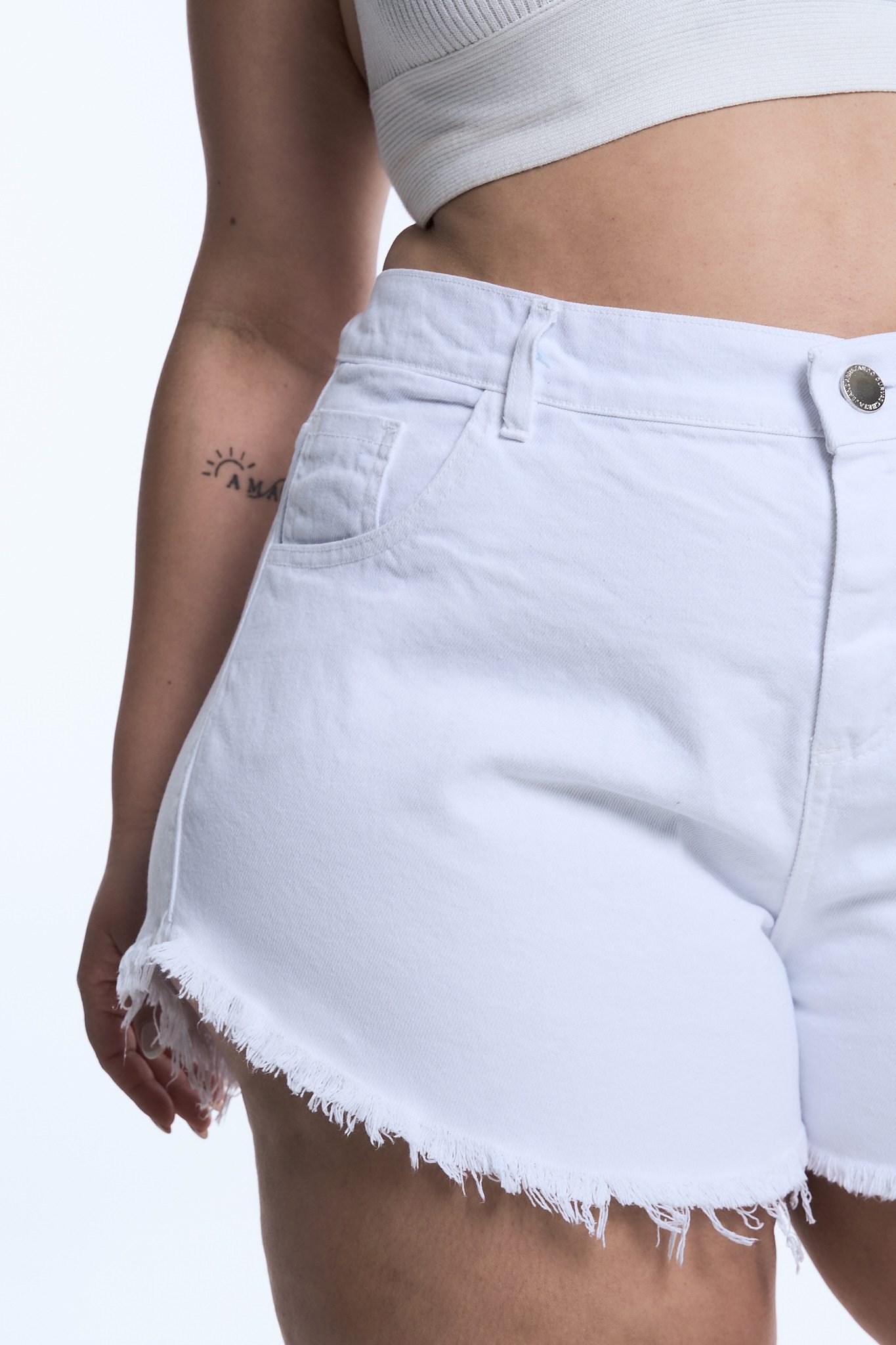 SHORT WHITNEY. De tela rígida con ruedo desflecado.