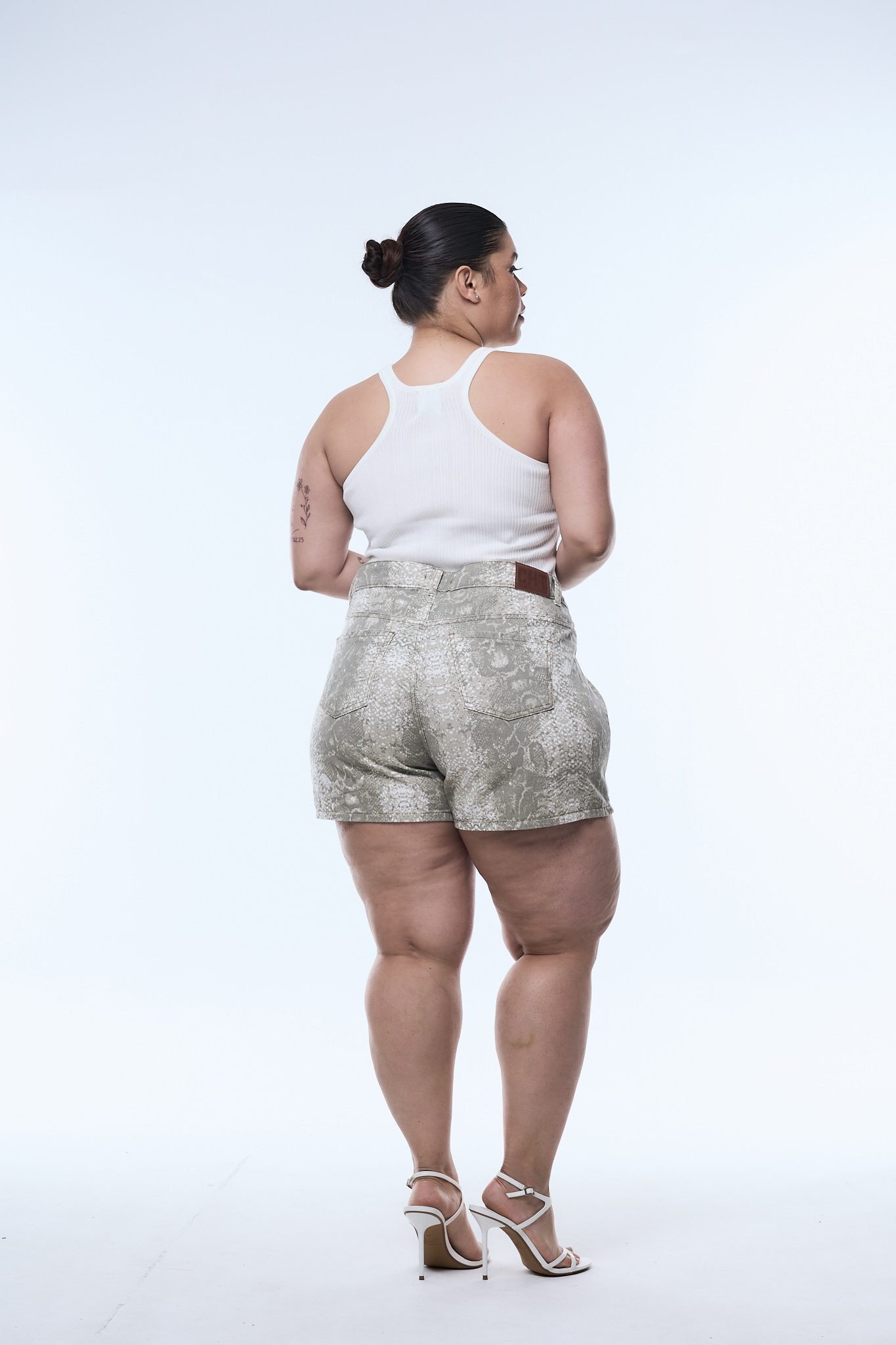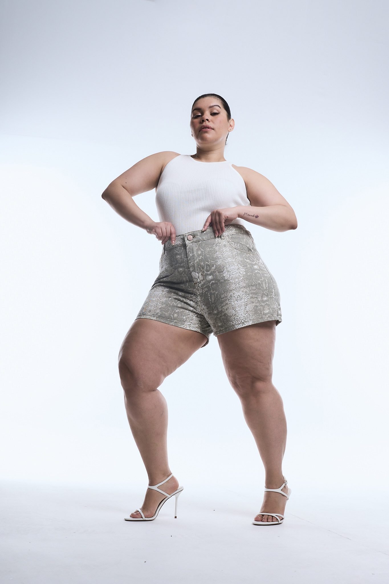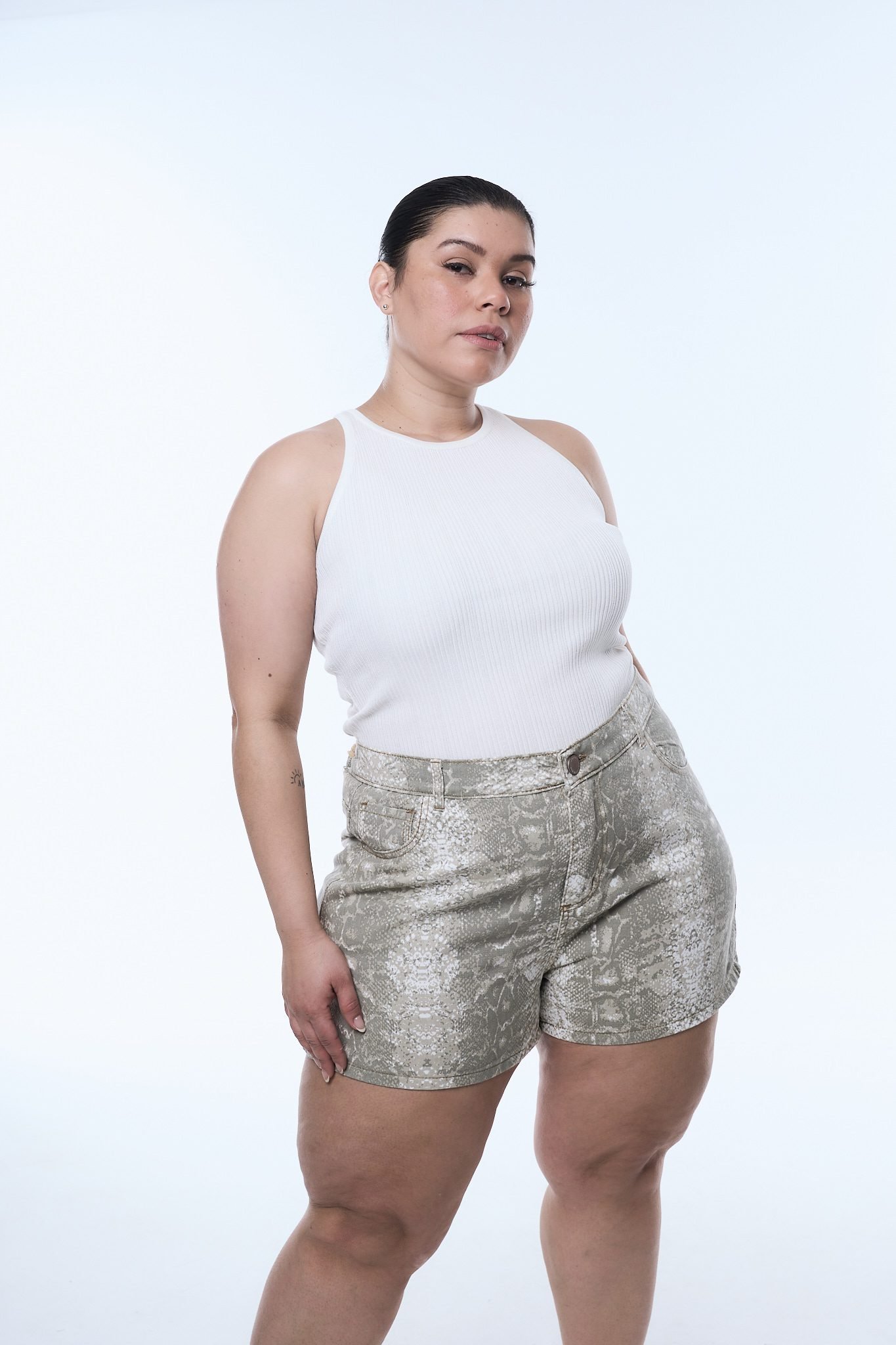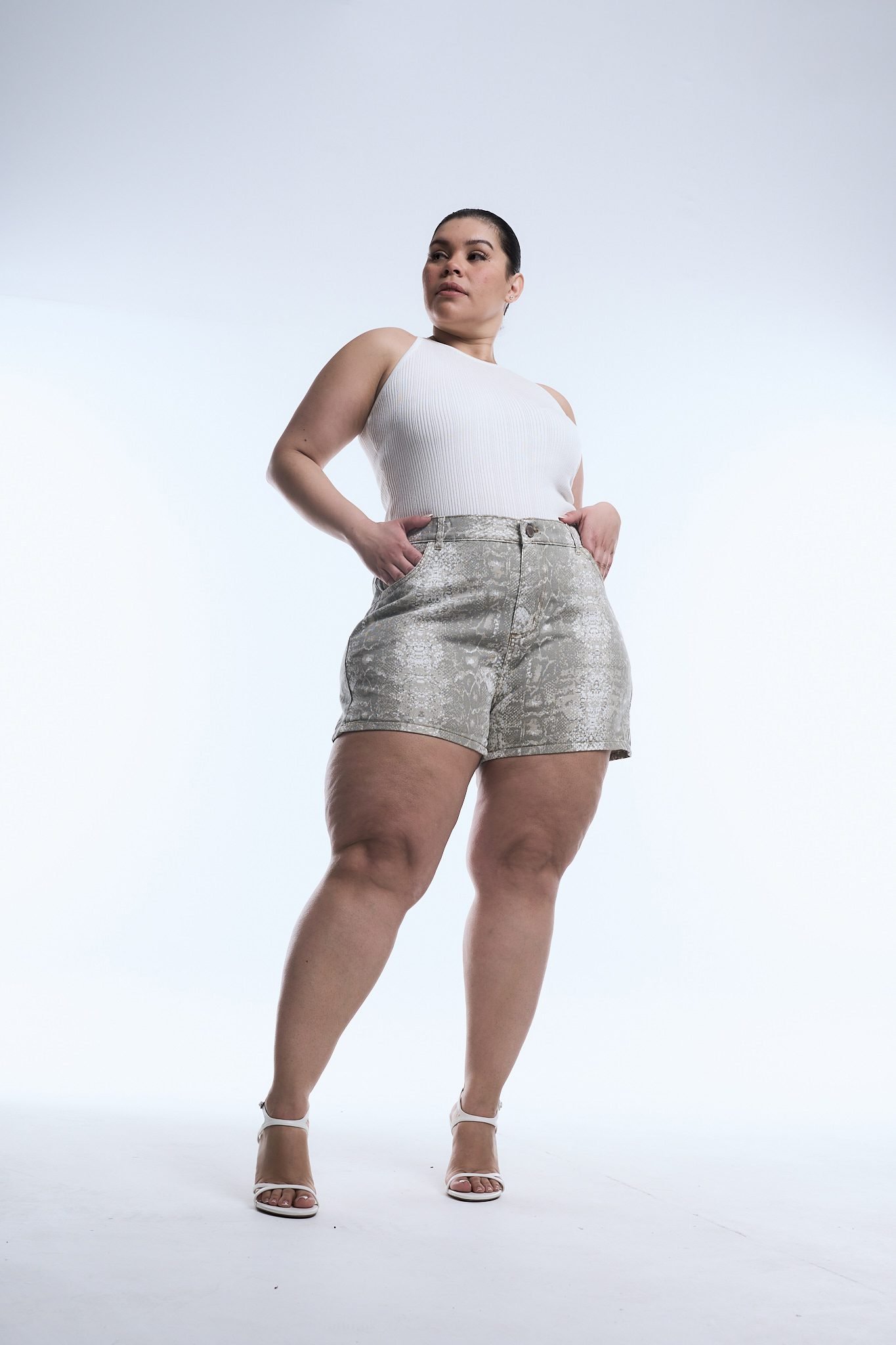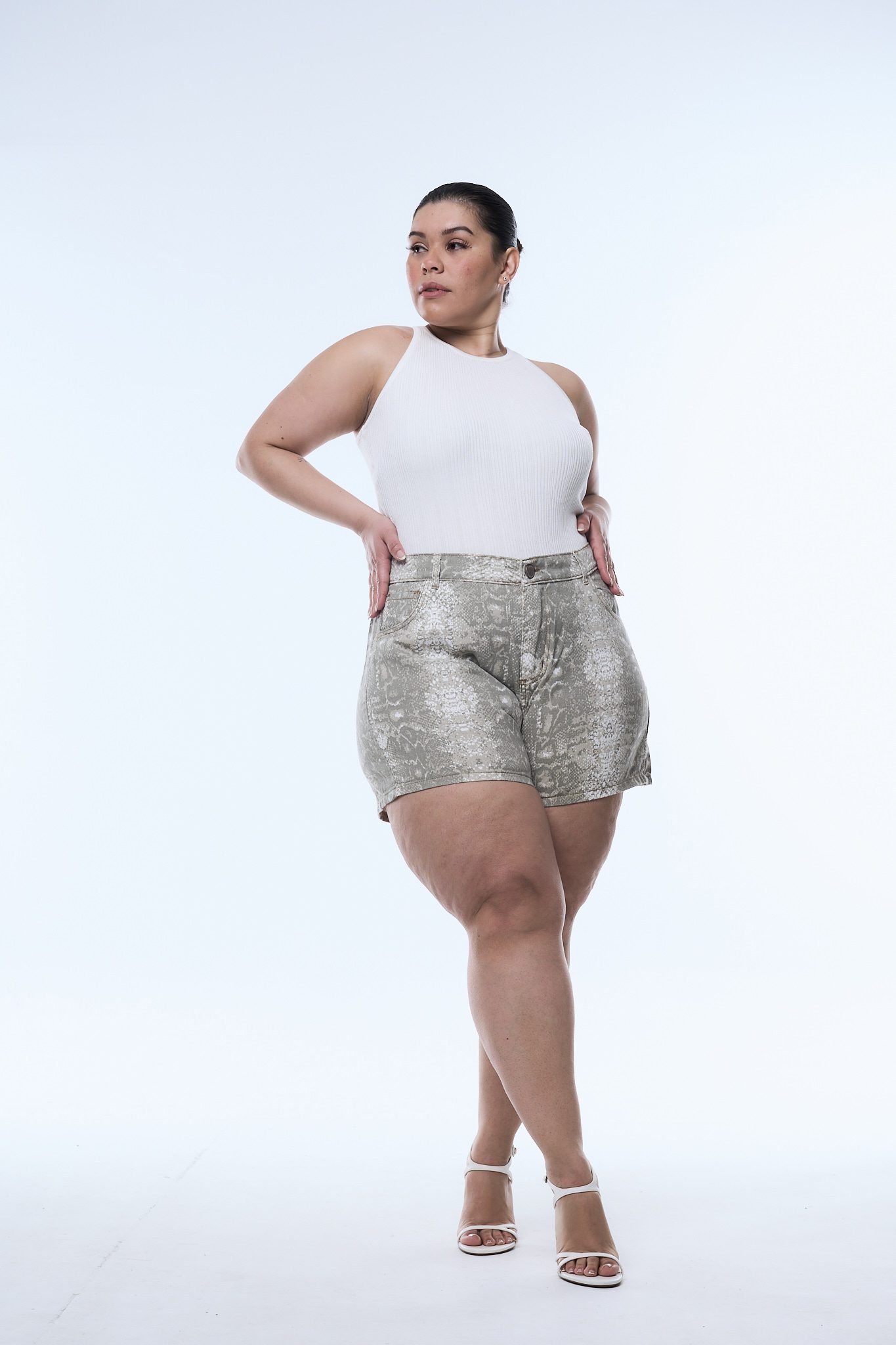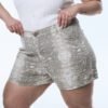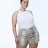 SHORT YARA. De tela rígida, estilo reptíl con ruedo clásico.