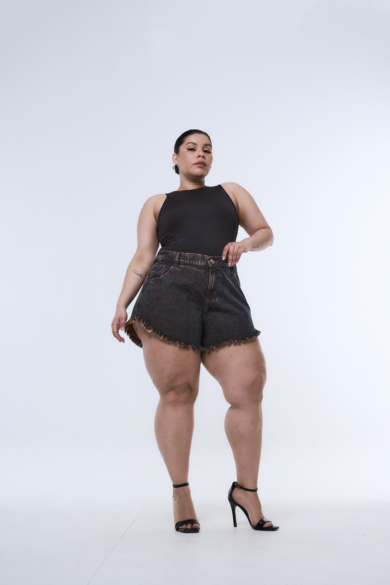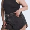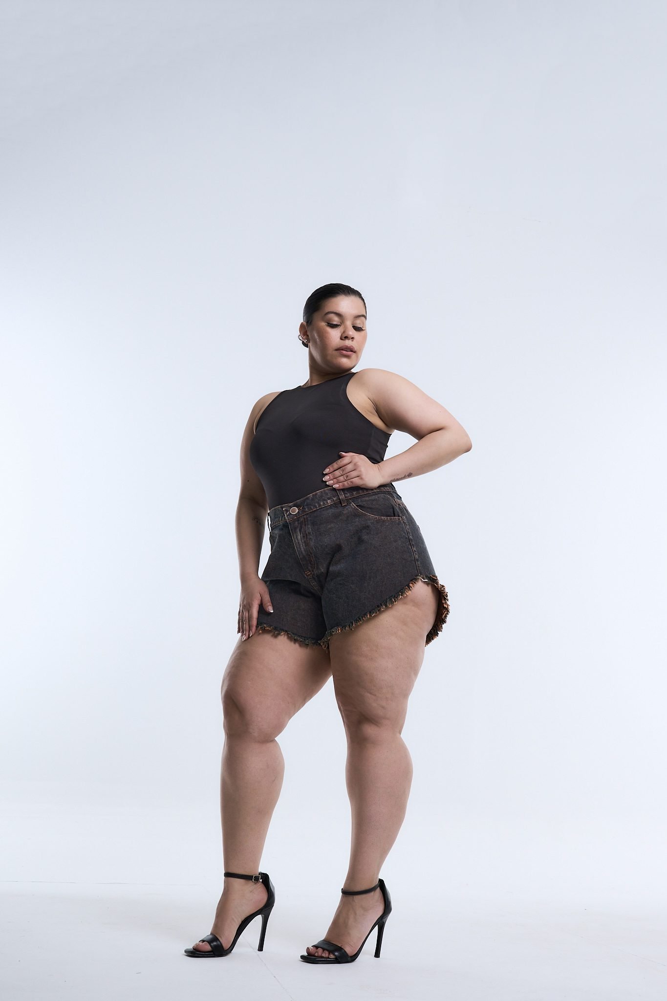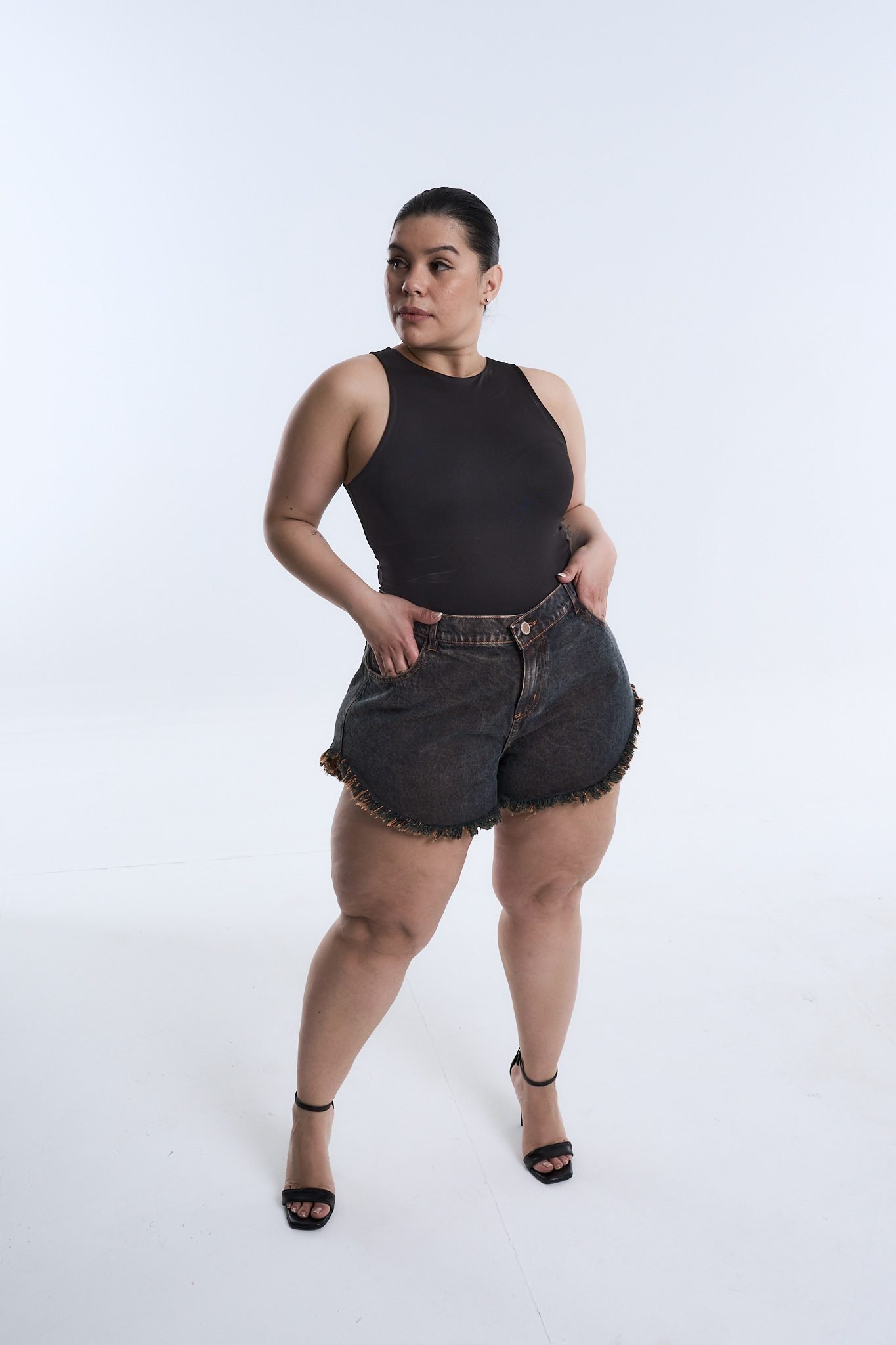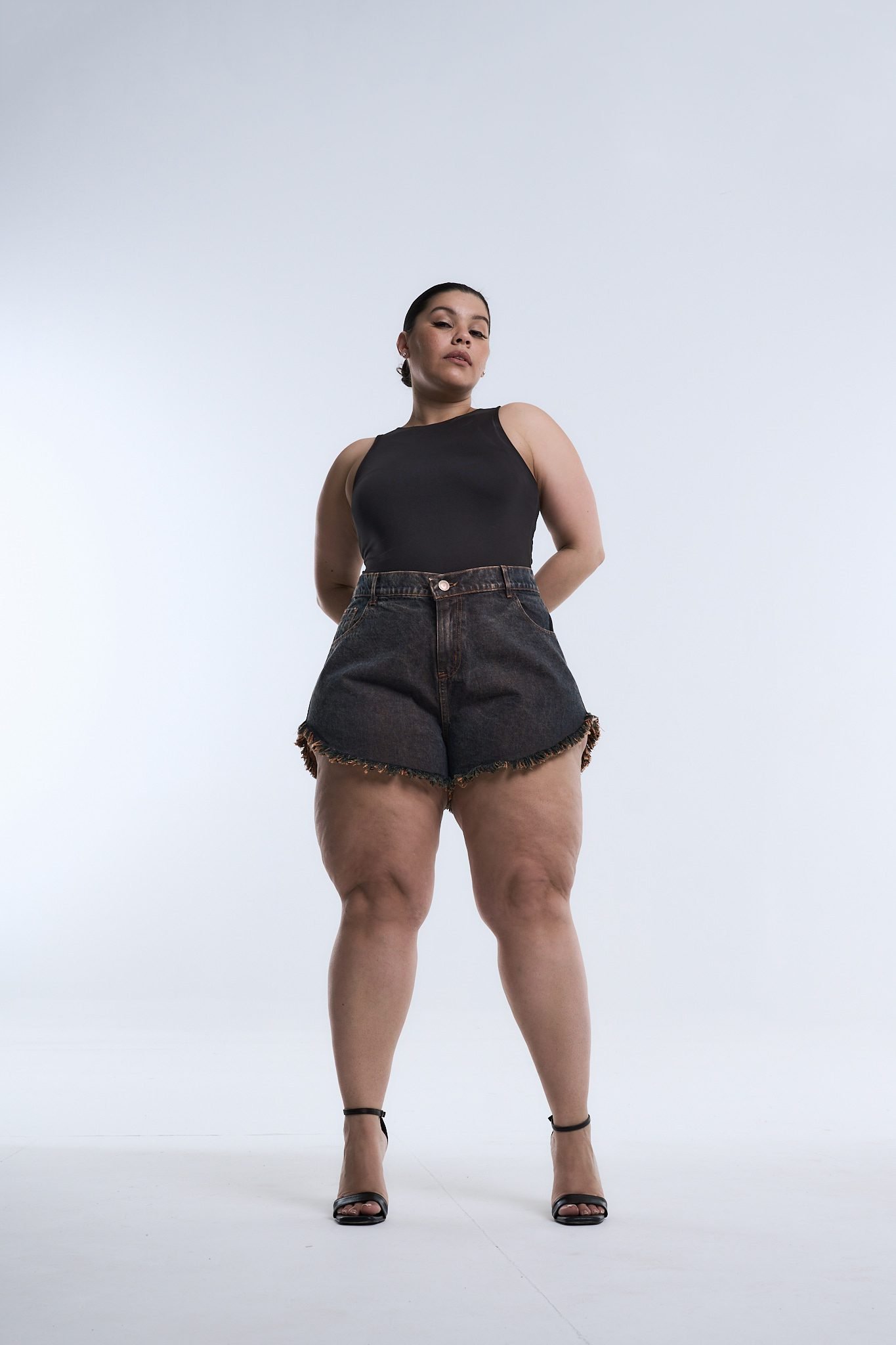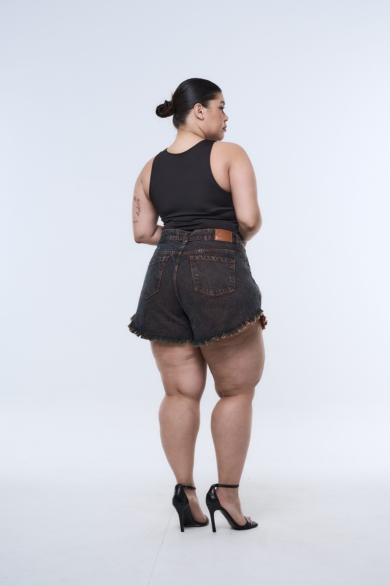 SHORT ZINNIA NEVADO. De tela rígida con ruedo desflecado.